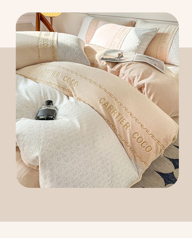 当前位置: 91家纺网 > 商品网购 > 床品套件 > 四件套 > 牛奶绒四件套 > 灰鲸 2025新款牛奶绒拼接刺绣雕花套件-露娜 露娜-奶茶