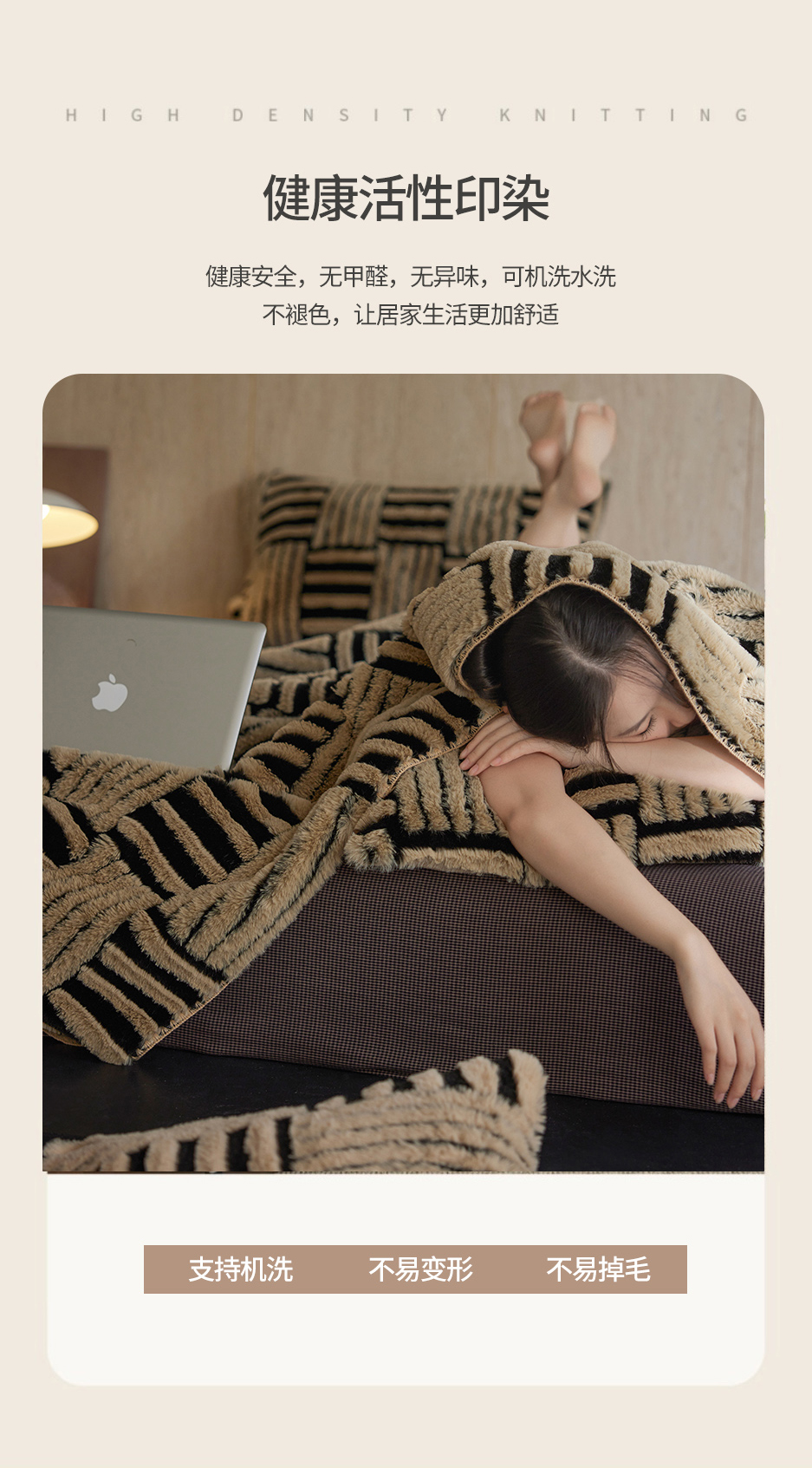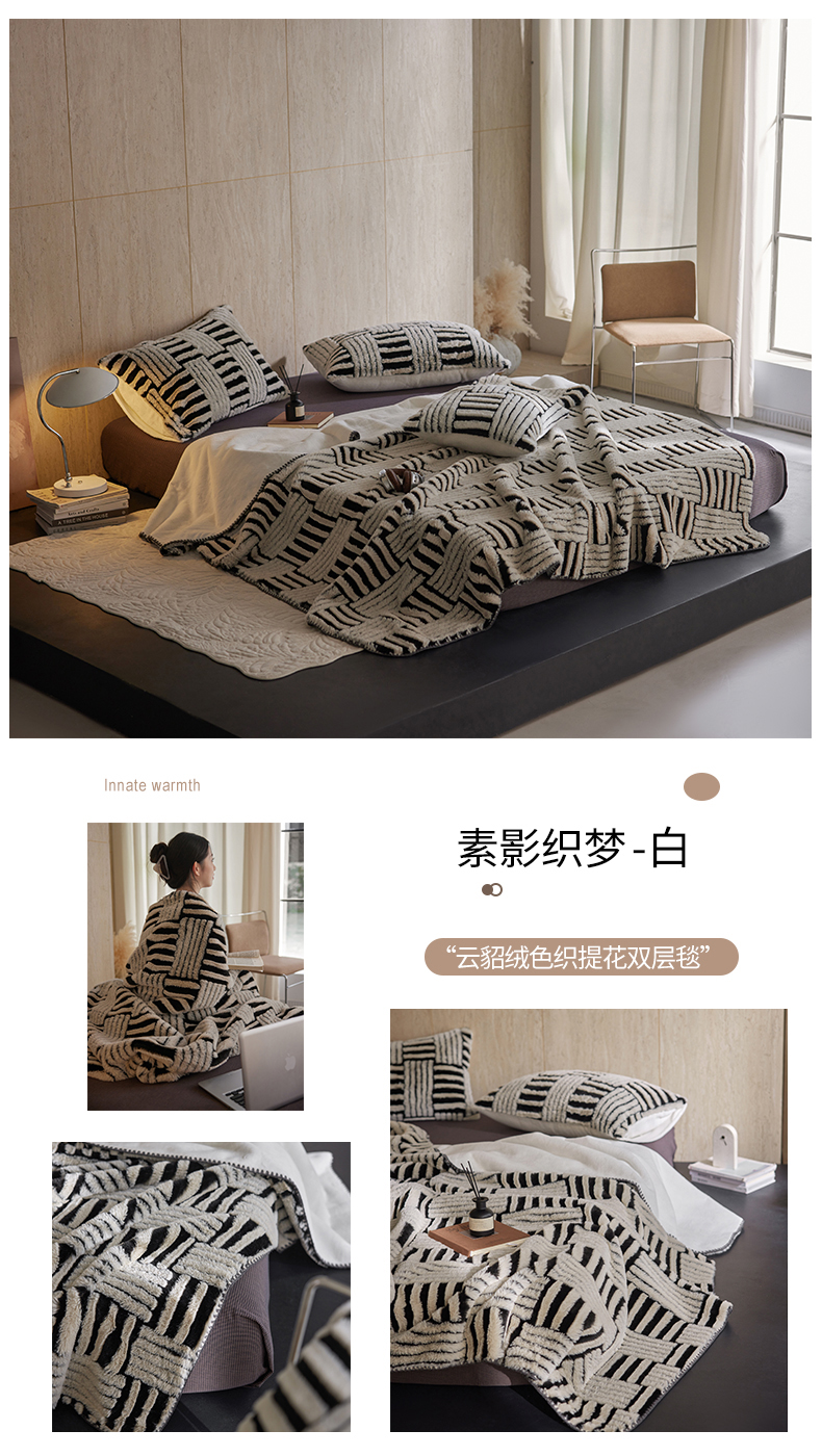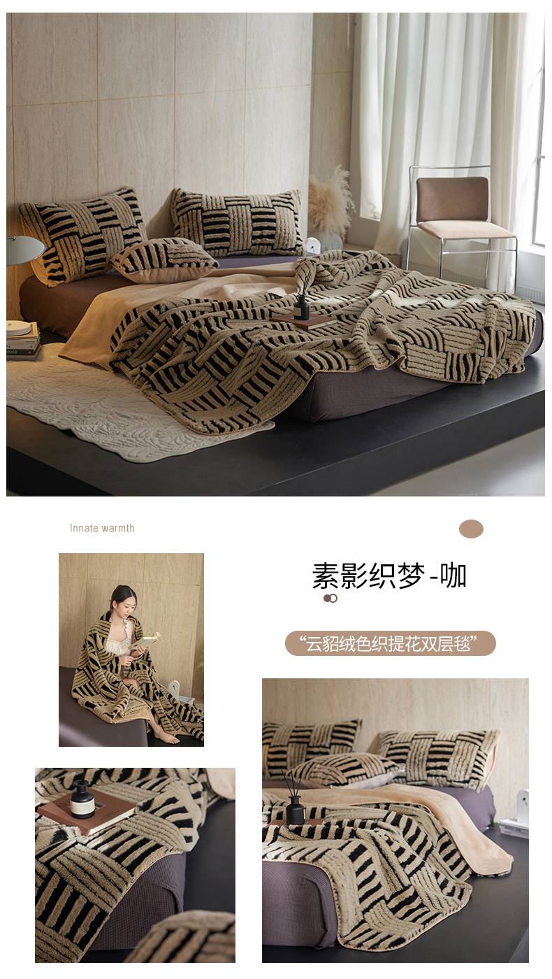 商品名称:宜代光年 2025新款云貂绒色织提花双层毯-场景一 素影织梦-咖