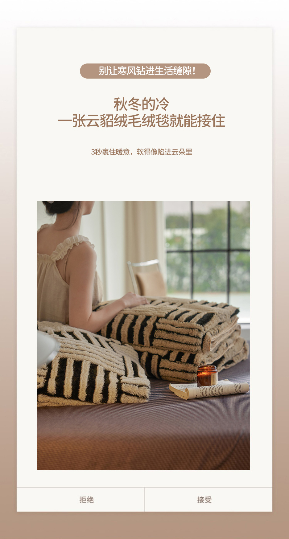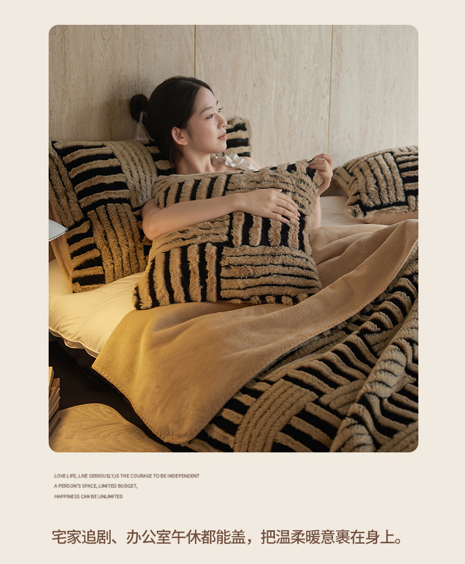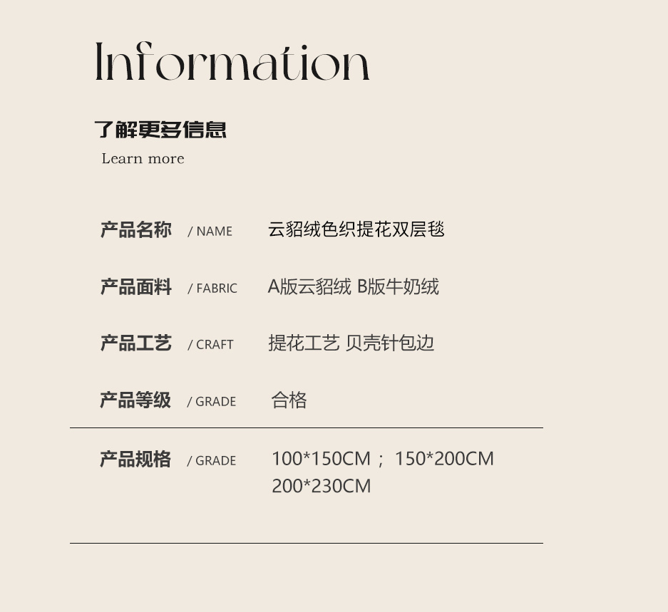 商品名称:宜代光年 2025新款云貂绒色织提花双层毯-场景一 素影织梦-咖