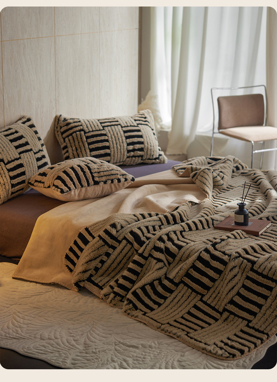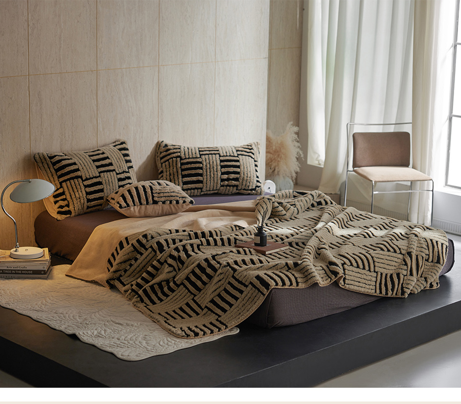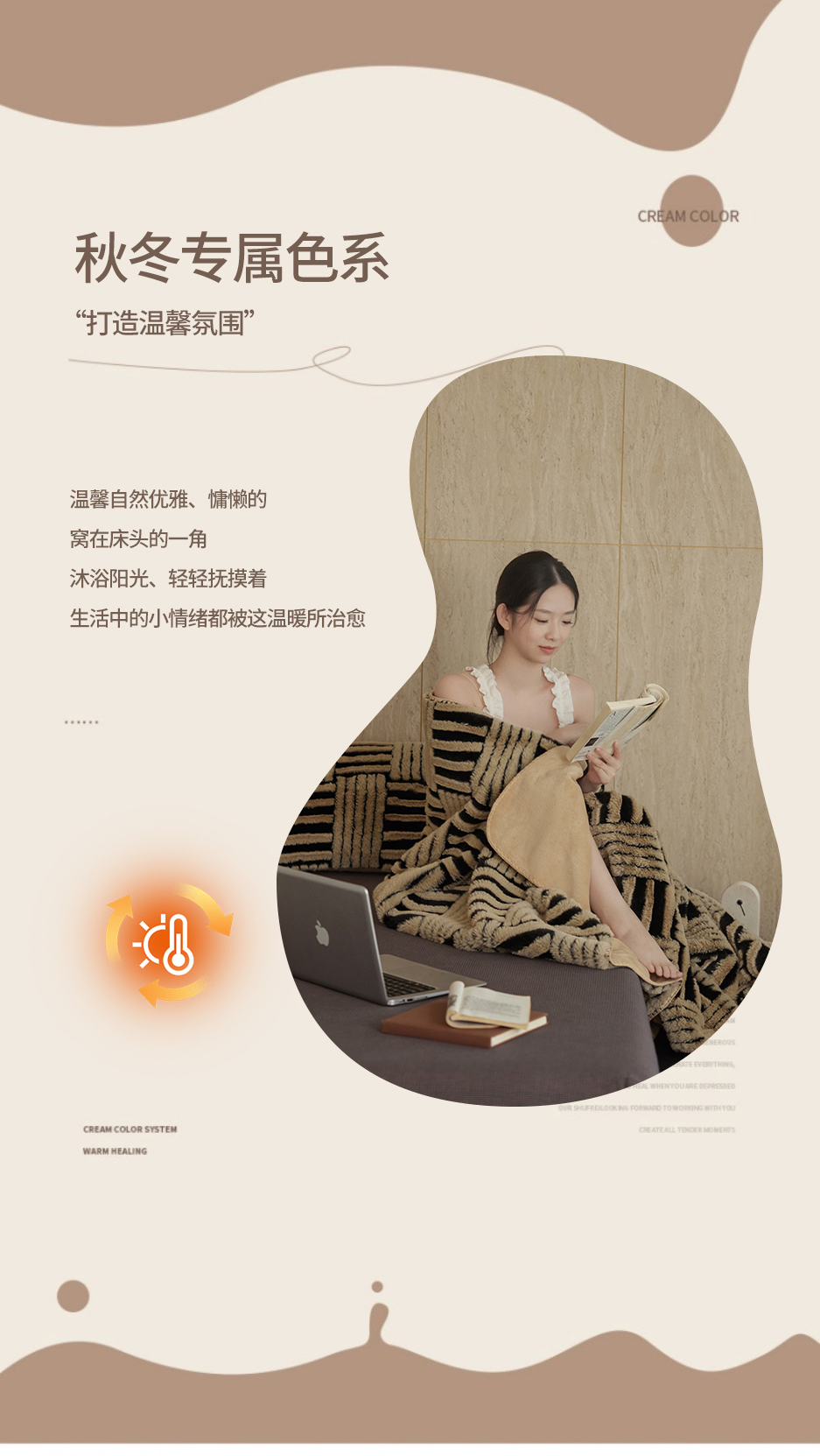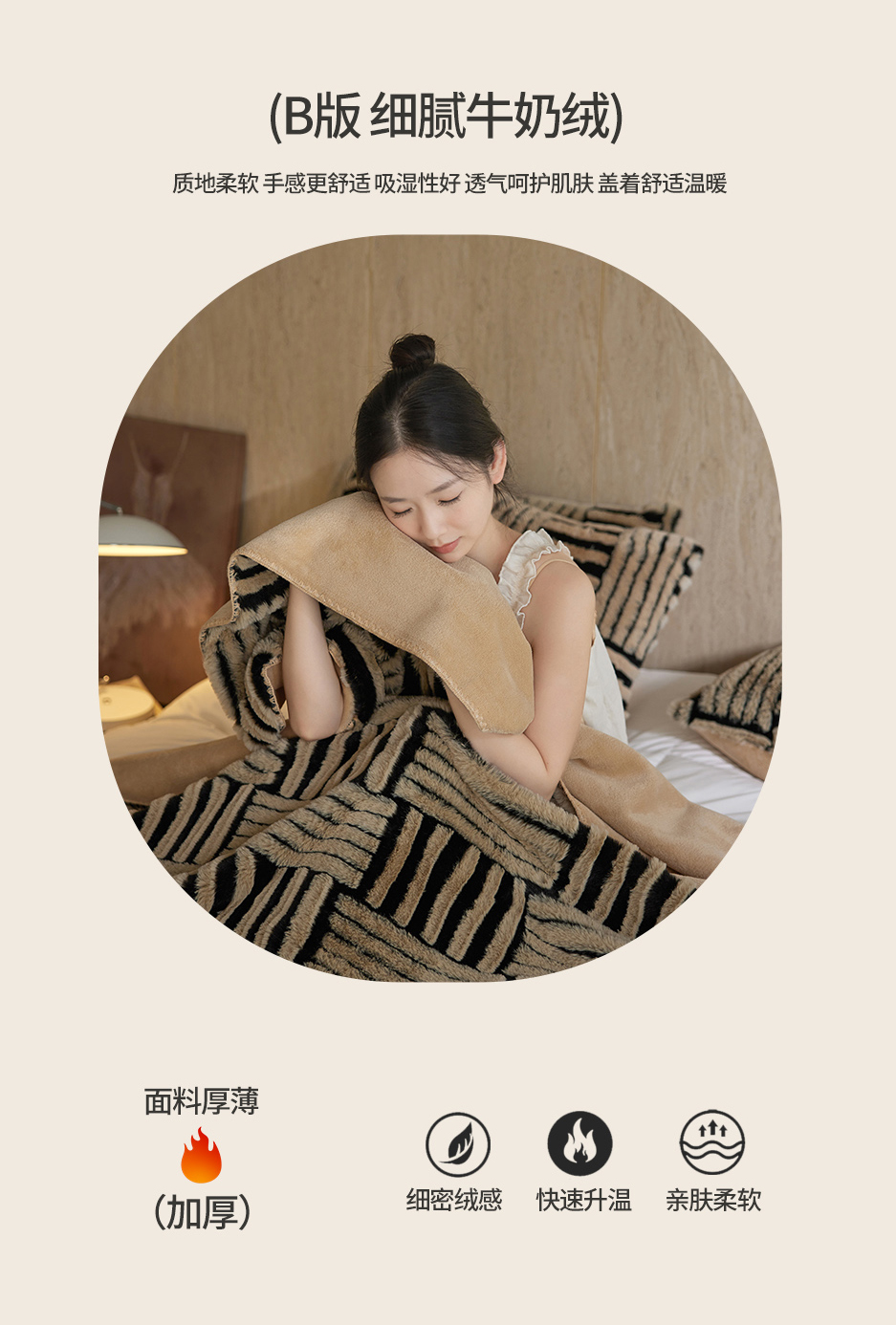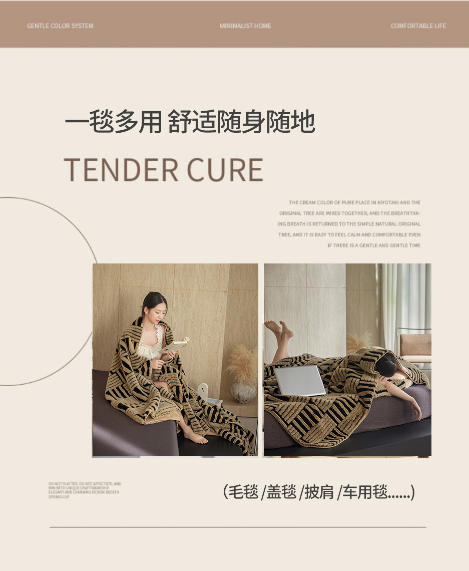 宜代光年 2025新款云貂绒色织提花双层毯-场景一 素影织梦-咖