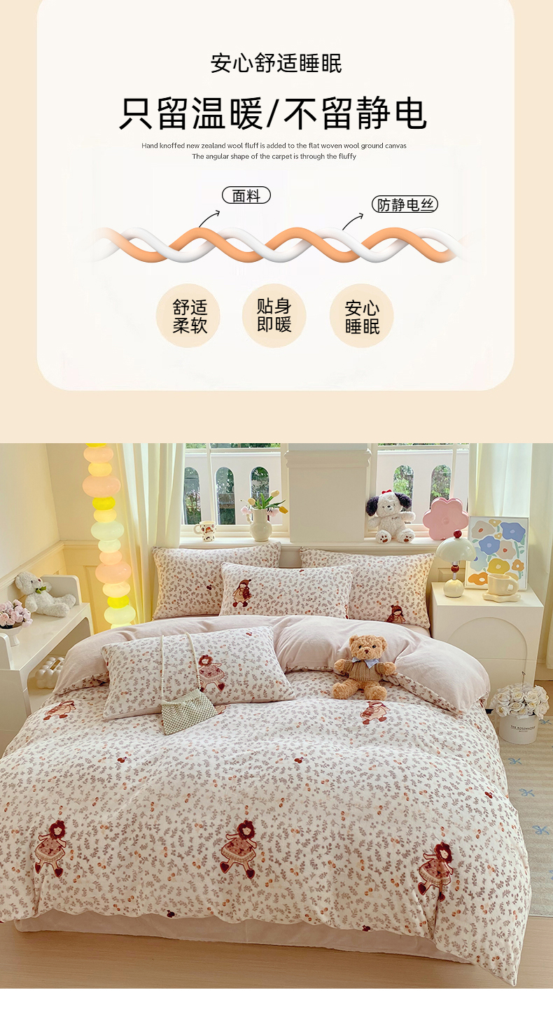 当前位置: 91家纺网 > 商品网购 > 床品套件 > 四件套 > 牛奶绒四件套 > YYDS网供 2025新款ins风牛奶绒四件套萌趣卡通三件套花卉单被套秋冬软fufu防静电 甜美花间女孩