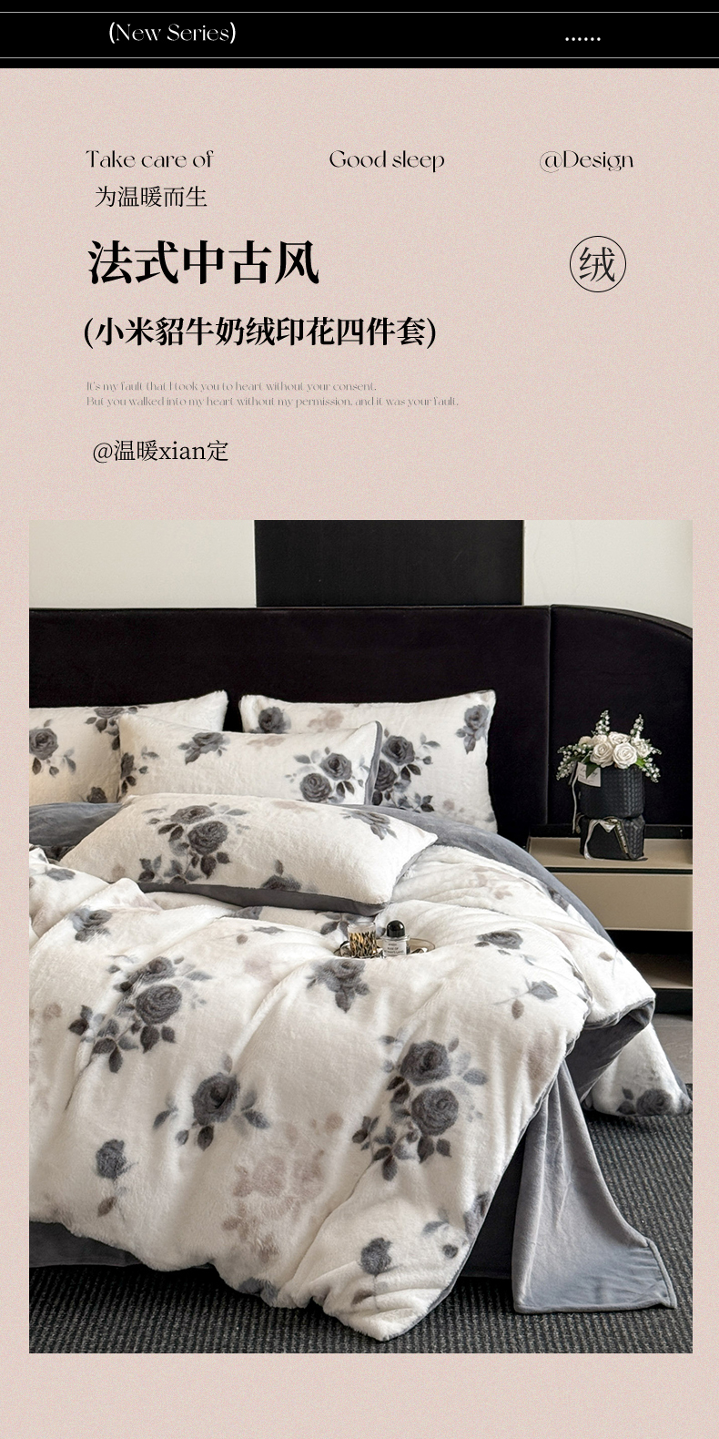 商品名称:宜代光年 2025新款小米貂法式中古风印花四件套 心上玫瑰