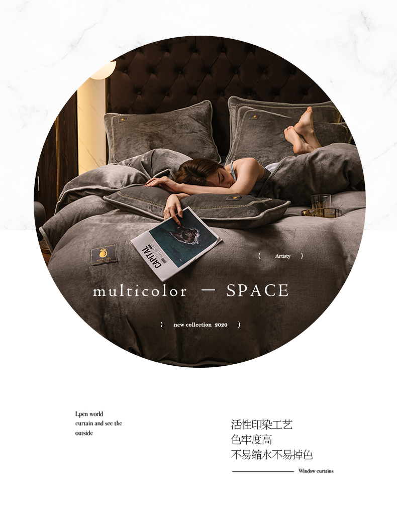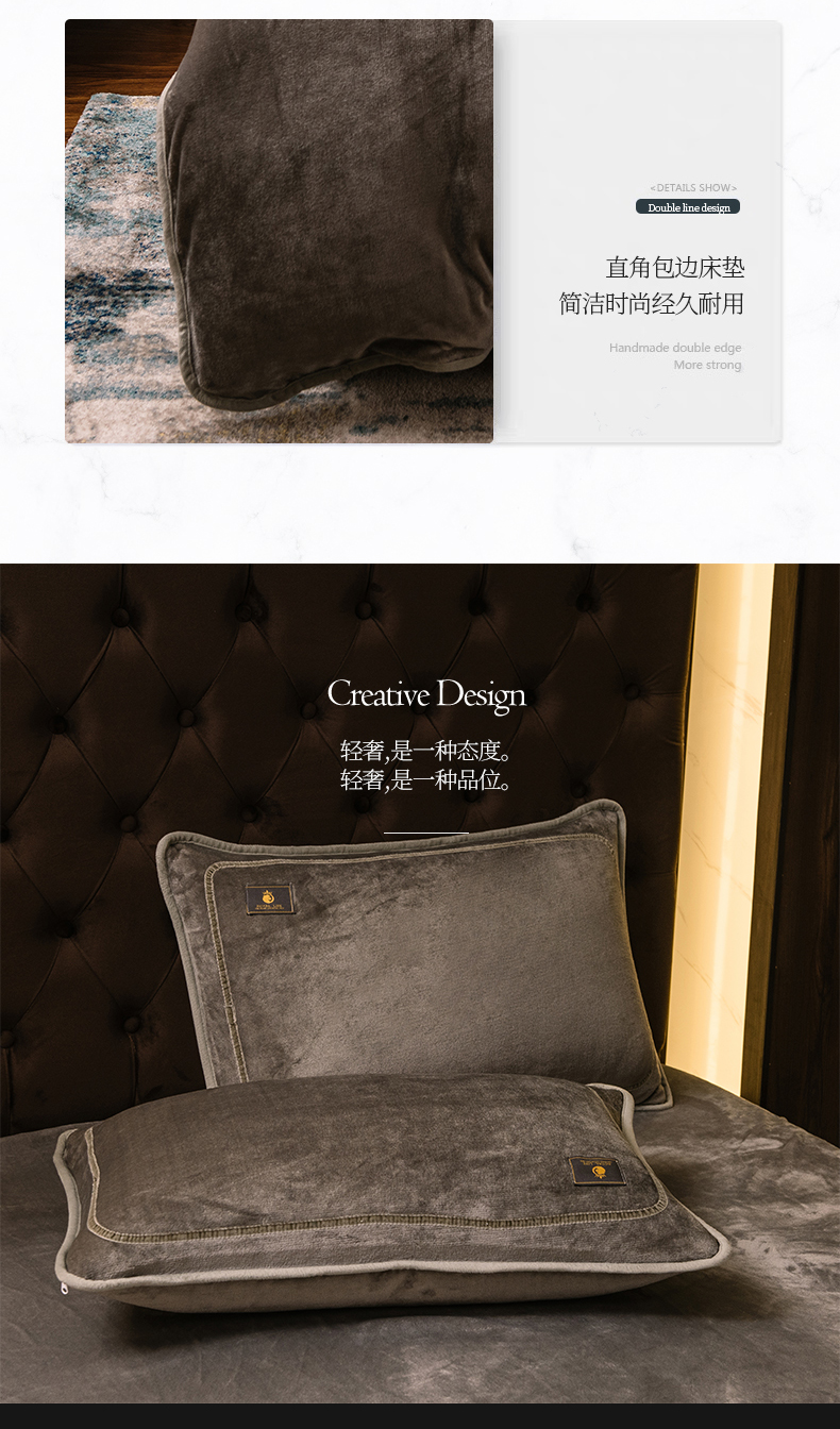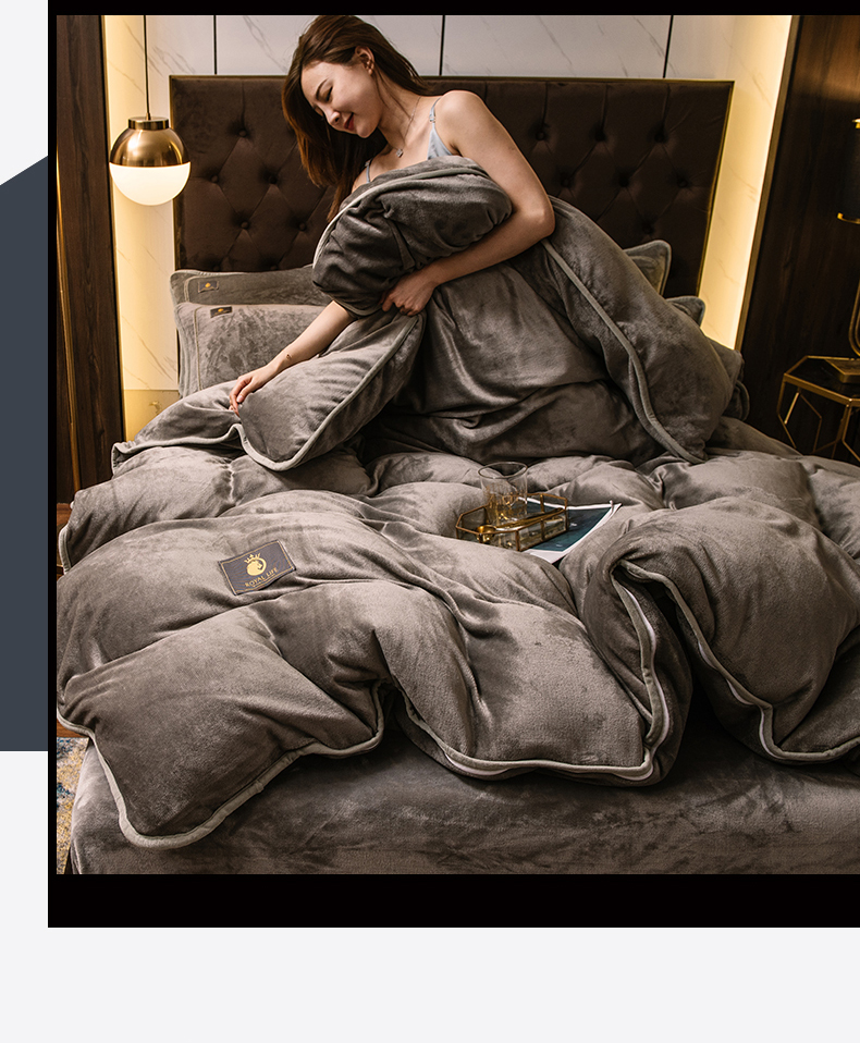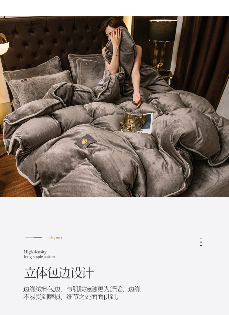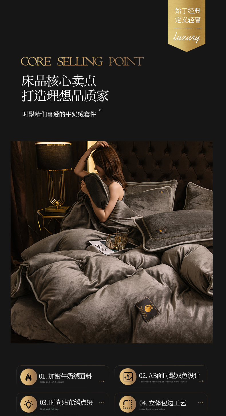 商品名称:宜代光年 2025新款加厚保暖纯色牛奶绒黑金四件套系列 高级灰