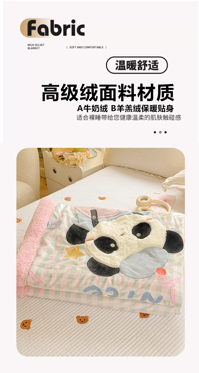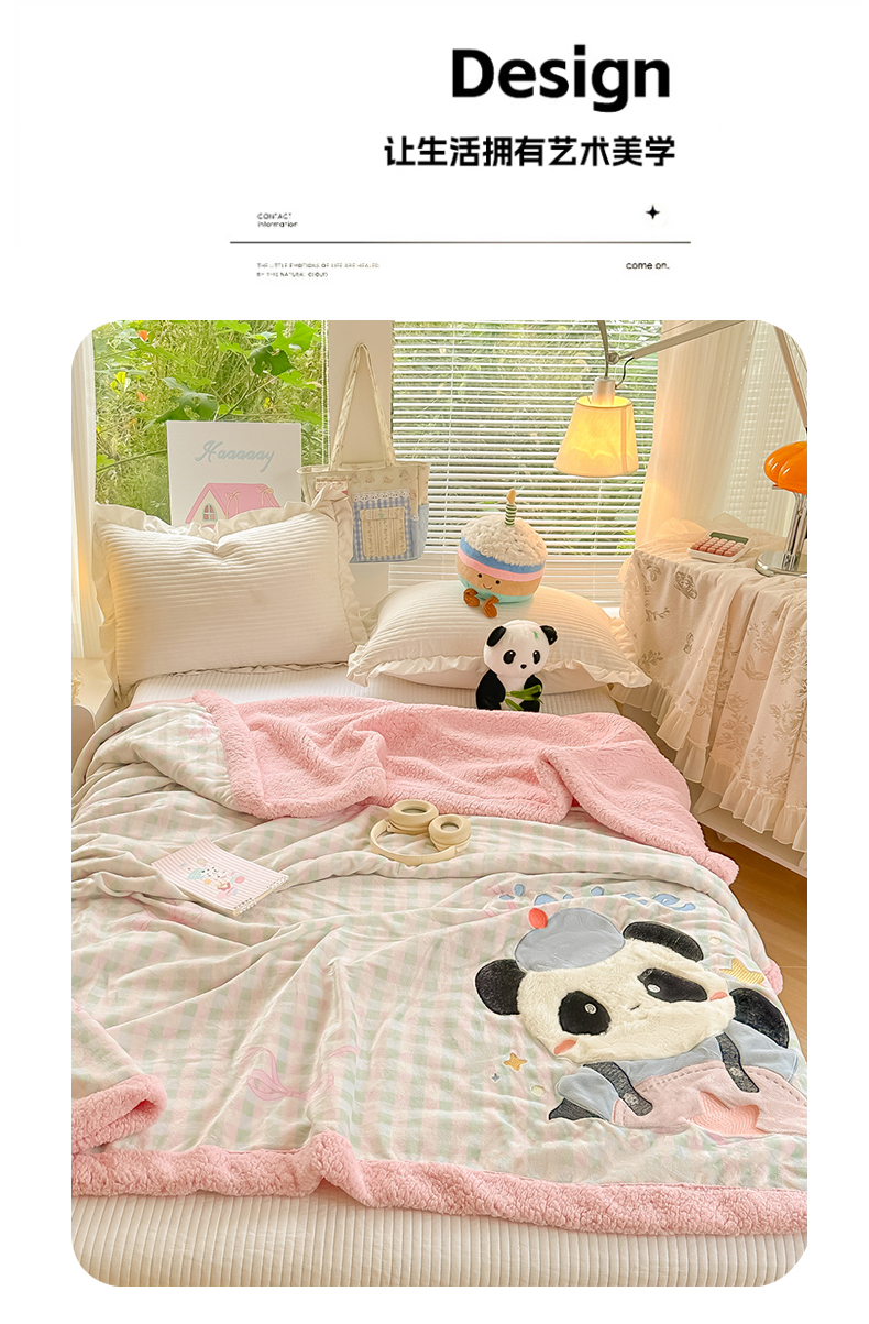 当前位置: 91家纺网 > 商品网购 > 毛毯休闲毯绒毯 > 毛毯 > 爱彼家纺 2025新款秋冬加厚牛奶绒羊羔绒卡通贴布绣毛毯毯子-熊猫系列 毛毯快乐熊猫-蝴蝶结格子