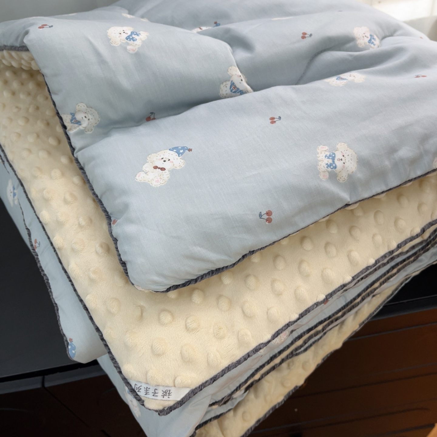 (总)暖居 2026新款一面纯棉一面绒床盖+同款纯棉豆豆被跑量,兰意,冰淇淋,绿芽,奶油波罗,森系绿野,疏影,樱桃密果,黑巧豹纹,小花,星月