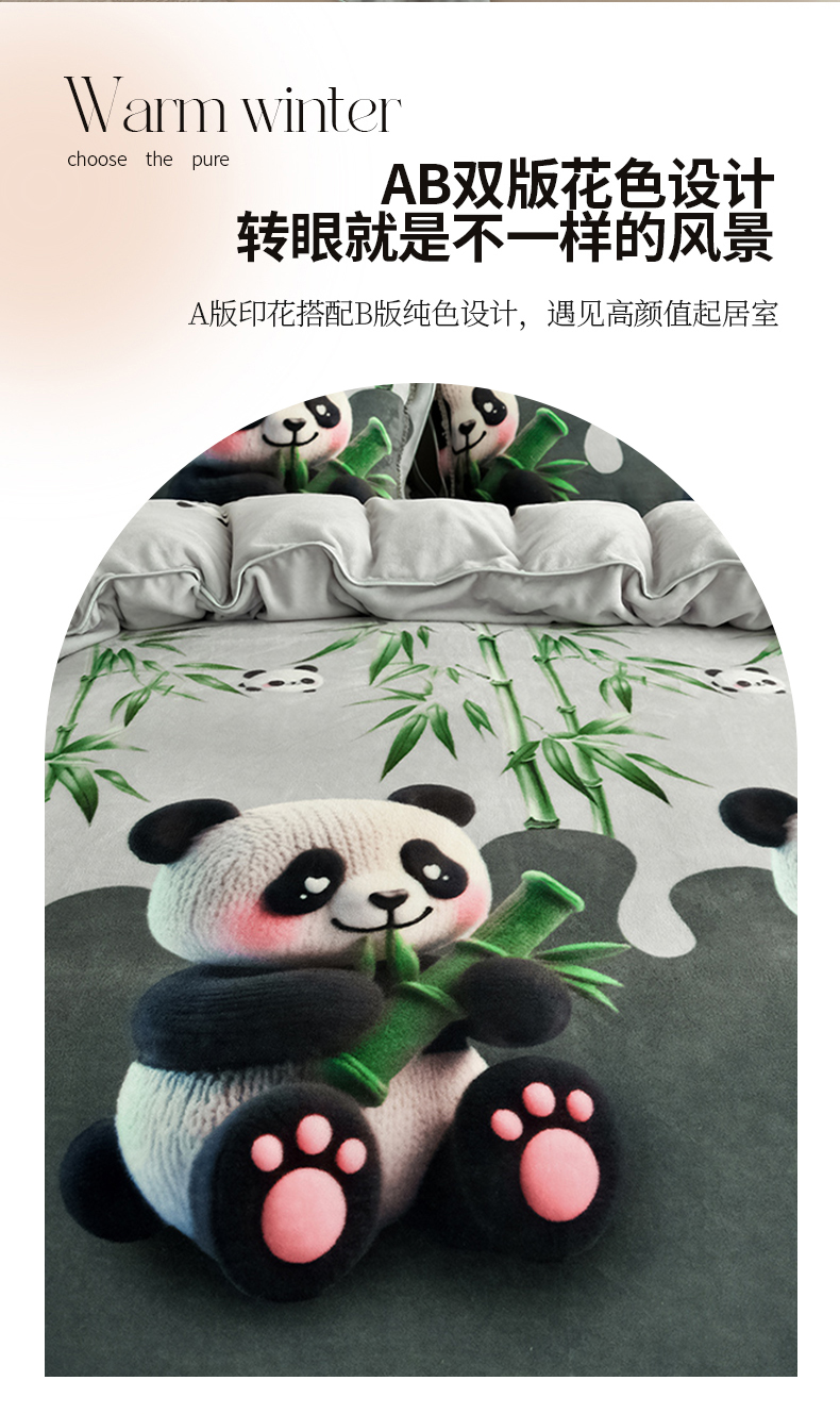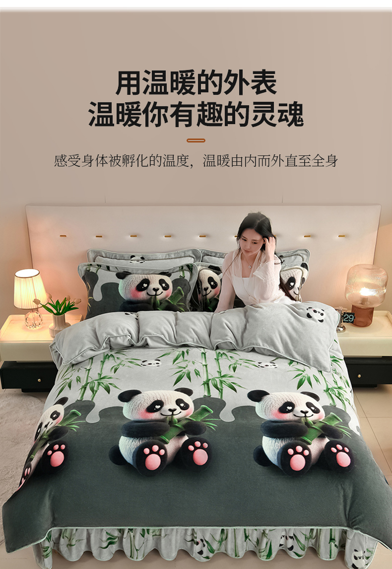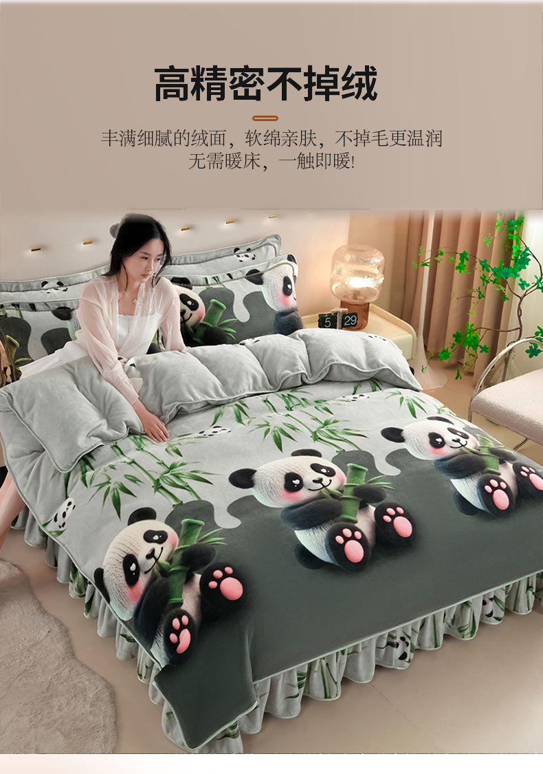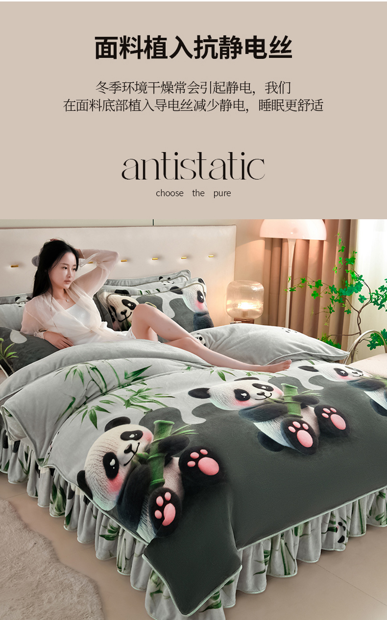 商品名称:雅芝蓝 2025新款8-9斤高克重印花牛奶绒四件套保暖绒套件直播爆款 熊抱竹-灰