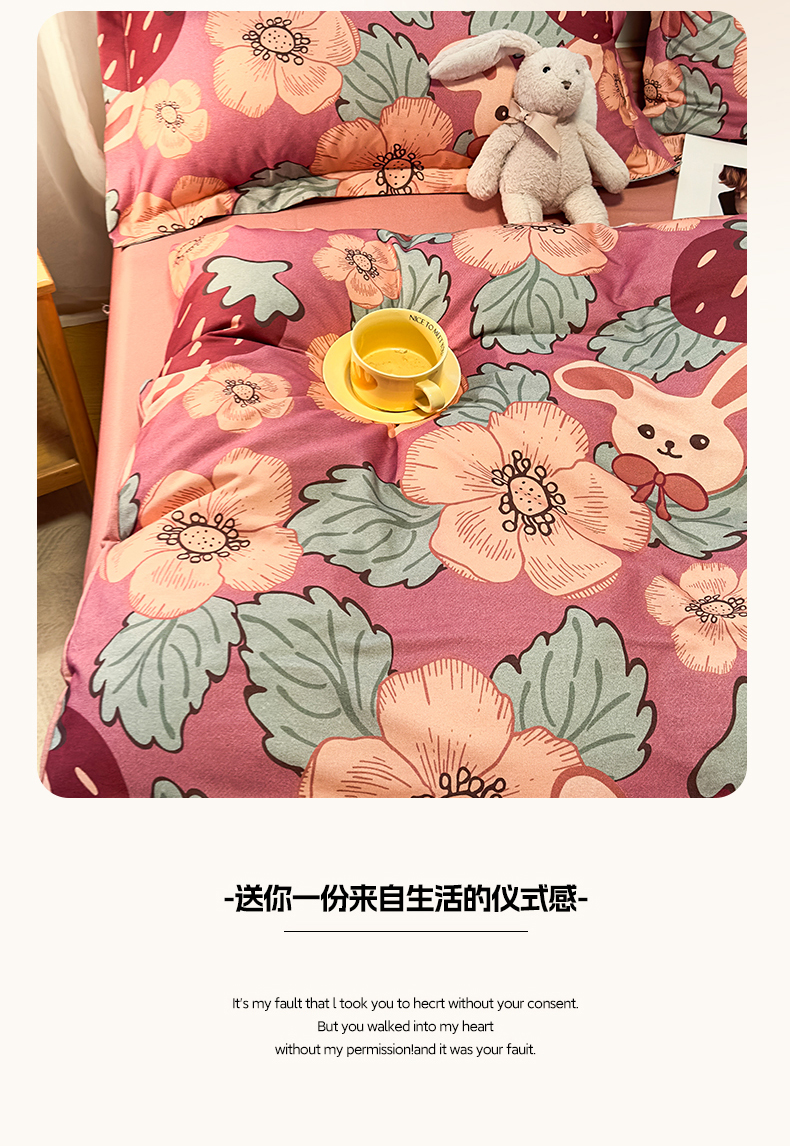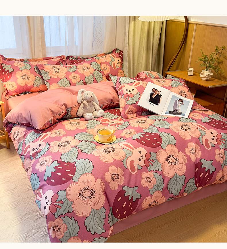 当前位置: 91家纺网 > 商品网购 > 床品套件 > 四件套 > 普通磨毛四件套 > 丝芙妮家居(原乐视家纺) 2025新款全棉磨毛多规格单品套件系列-四件套 草莓兔兔-粉