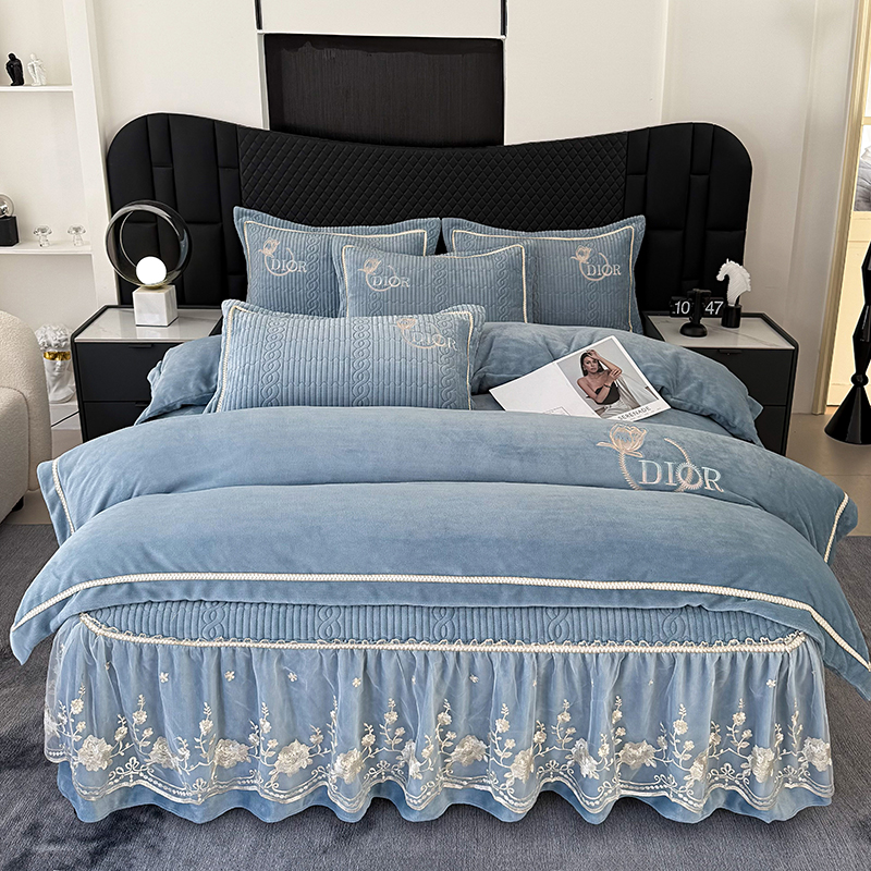 (总)优姿家纺 2025新款牛奶绒花边绣花床盖四件套