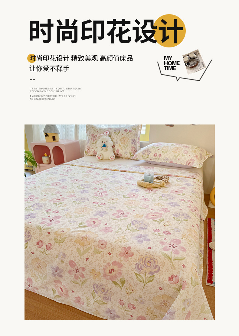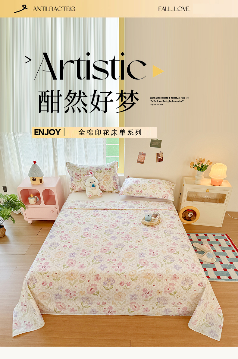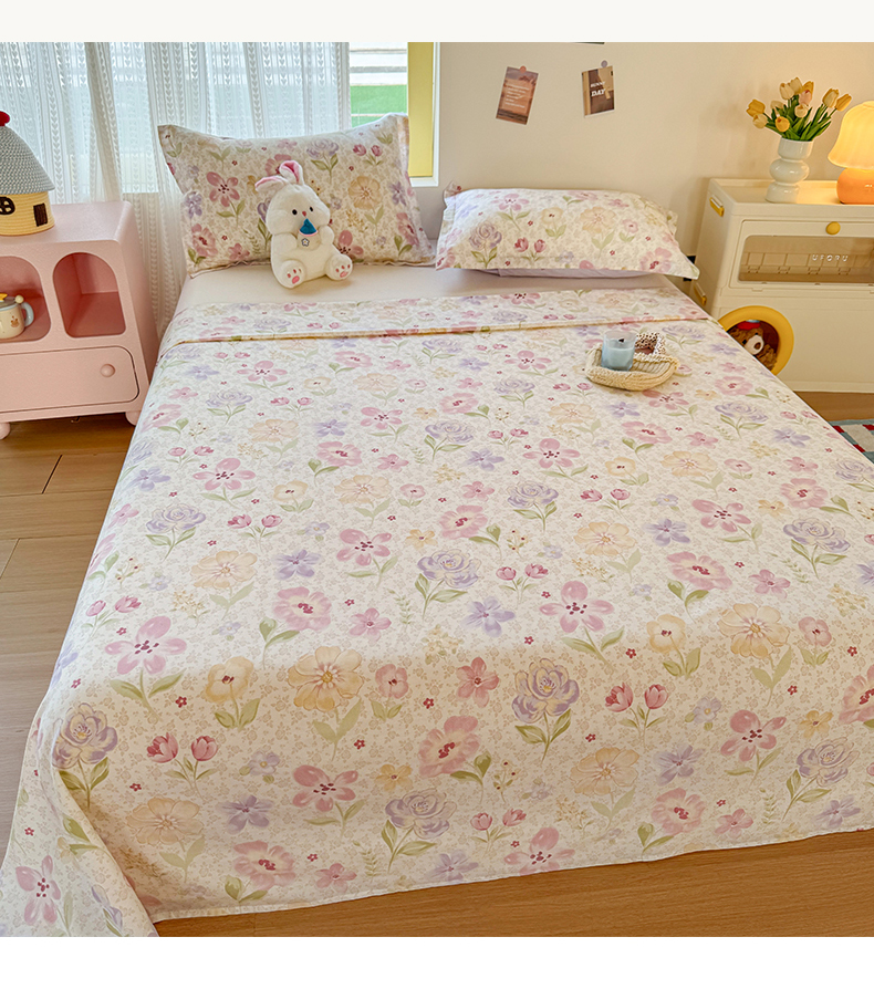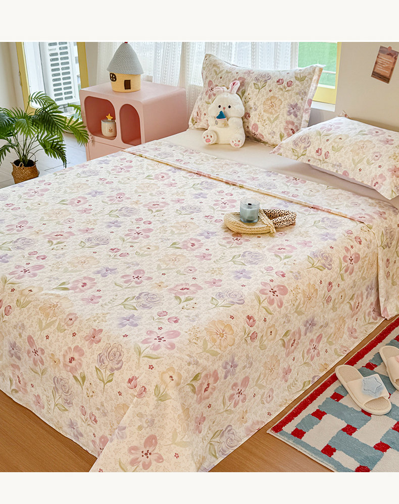 当前位置: 91家纺网 > 商品网购 > 床上用品 > 床单 > 尚帛 2026新款全棉品质喷气印花爆款四件套 多规格套件 单品系列-单床单 甜心花朵