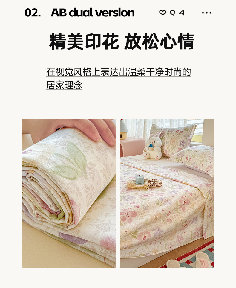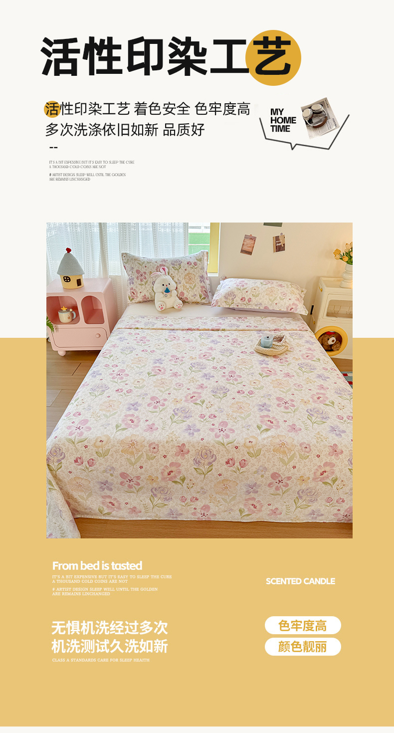 • 91家纺网 家纺一手货源 找家纺 尚帛 2026新款全棉品质喷气印花爆款四件套 多规格套件 单品系列-单床单 甜心花朵
