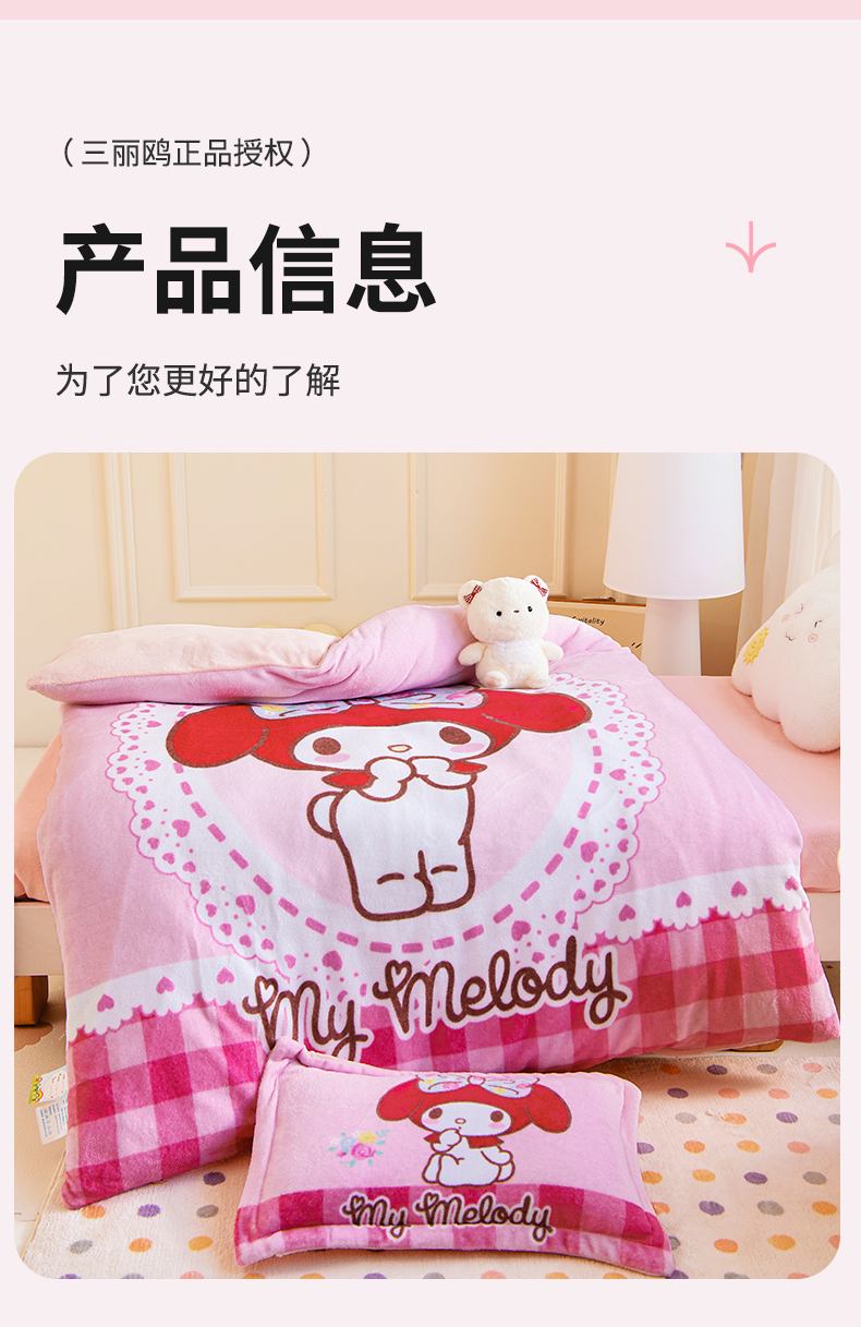 当前位置: 91家纺网 > 商品网购 > 床品套件 > 三件套 > 乐秀家纺 2025新款大版三丽鸥牛奶绒幼儿园被子可拆卸 单被套+被芯 魔法美乐蒂