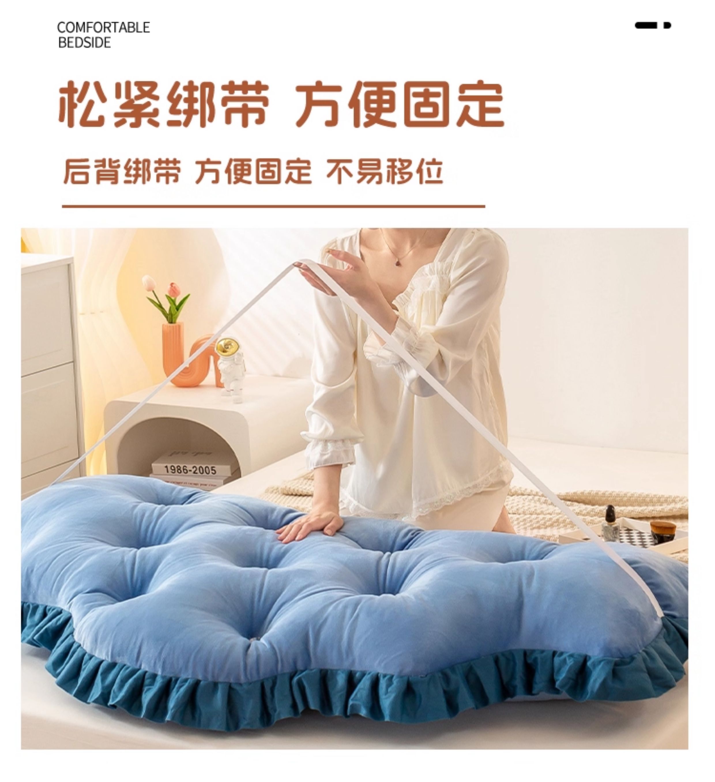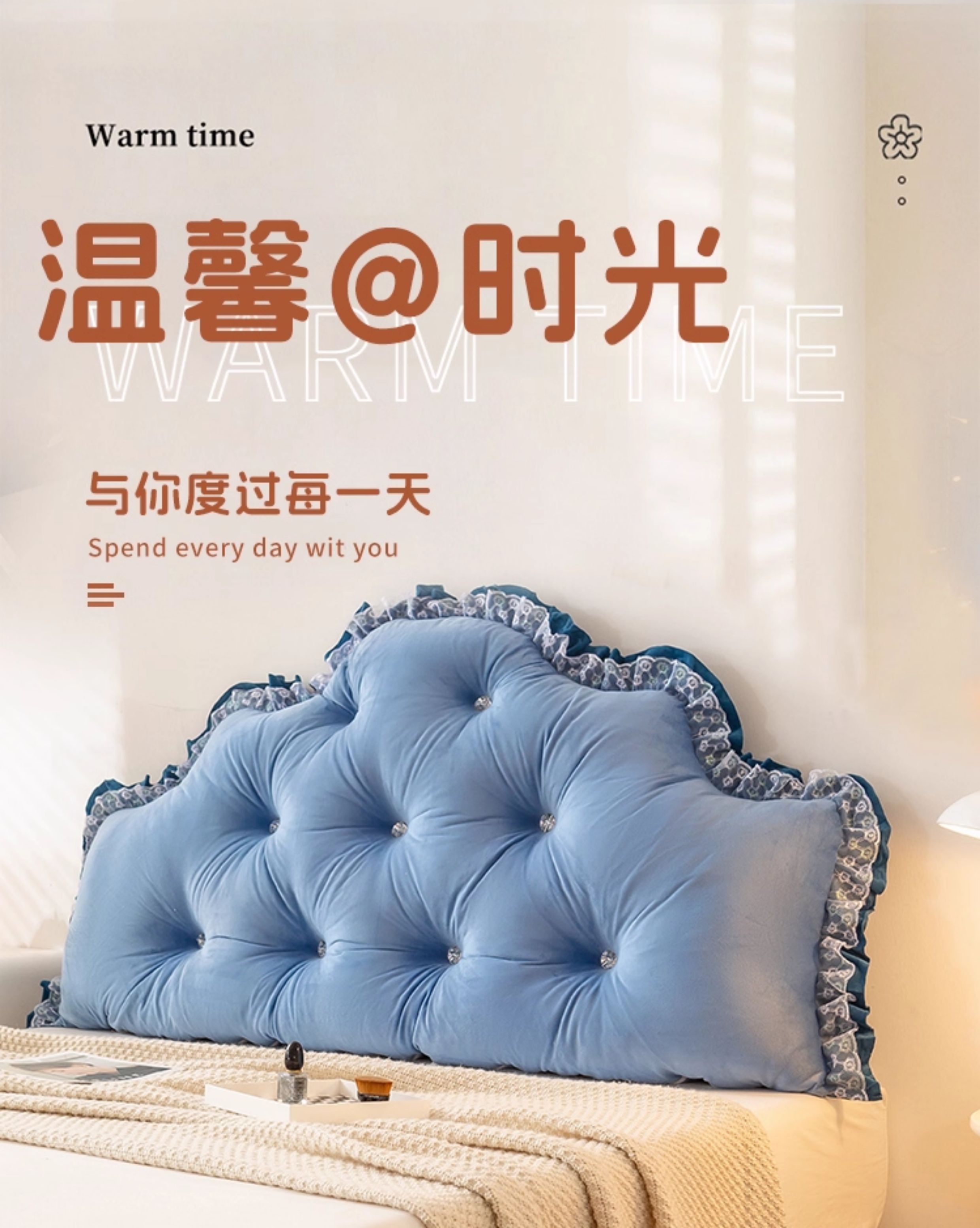 商品名称:碧尔家居 2025新款床头软靠垫加厚防撞靠背卧室靠枕固定绑带榻榻米软包可拆洗-朦胧 朦胧-天蓝