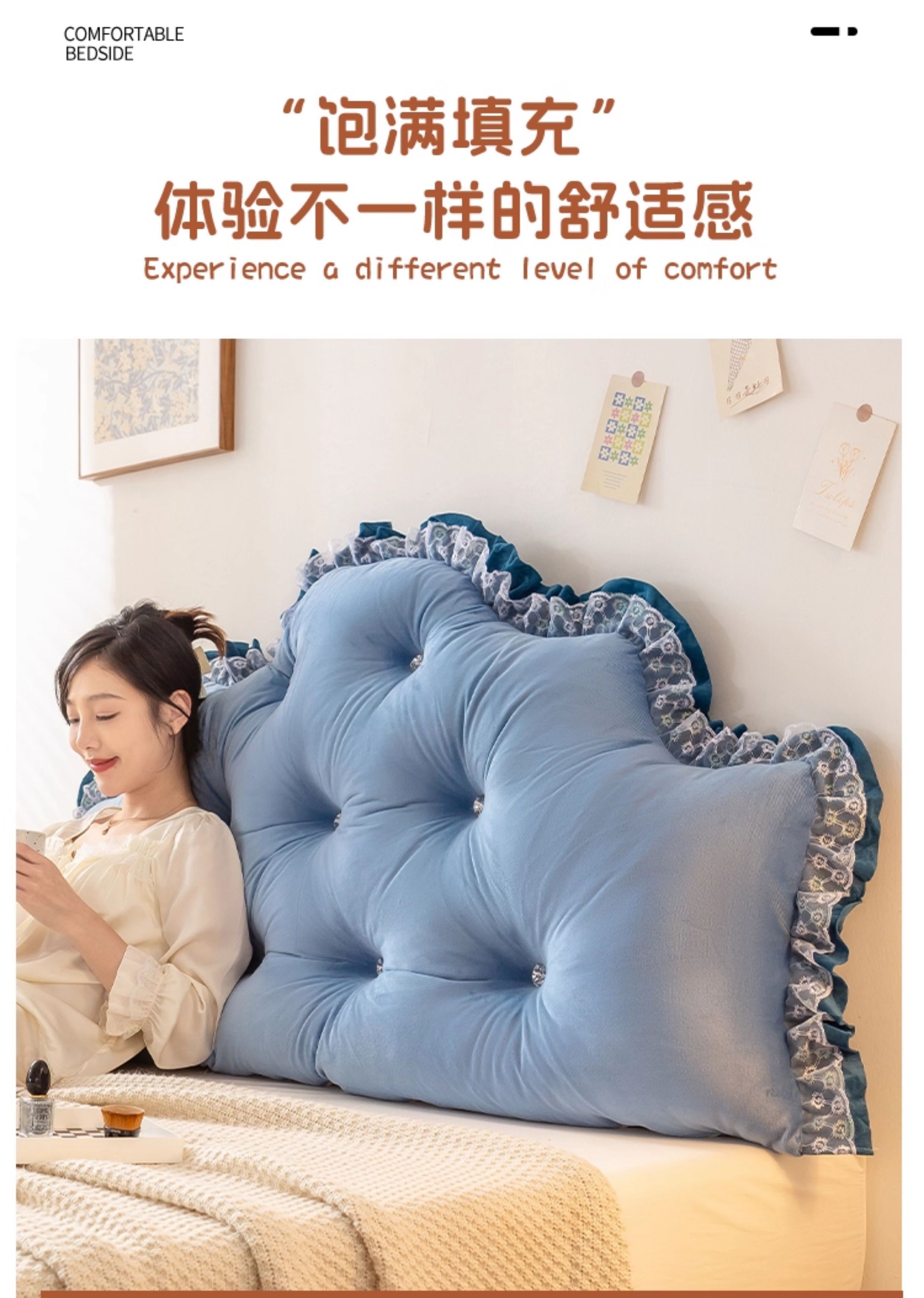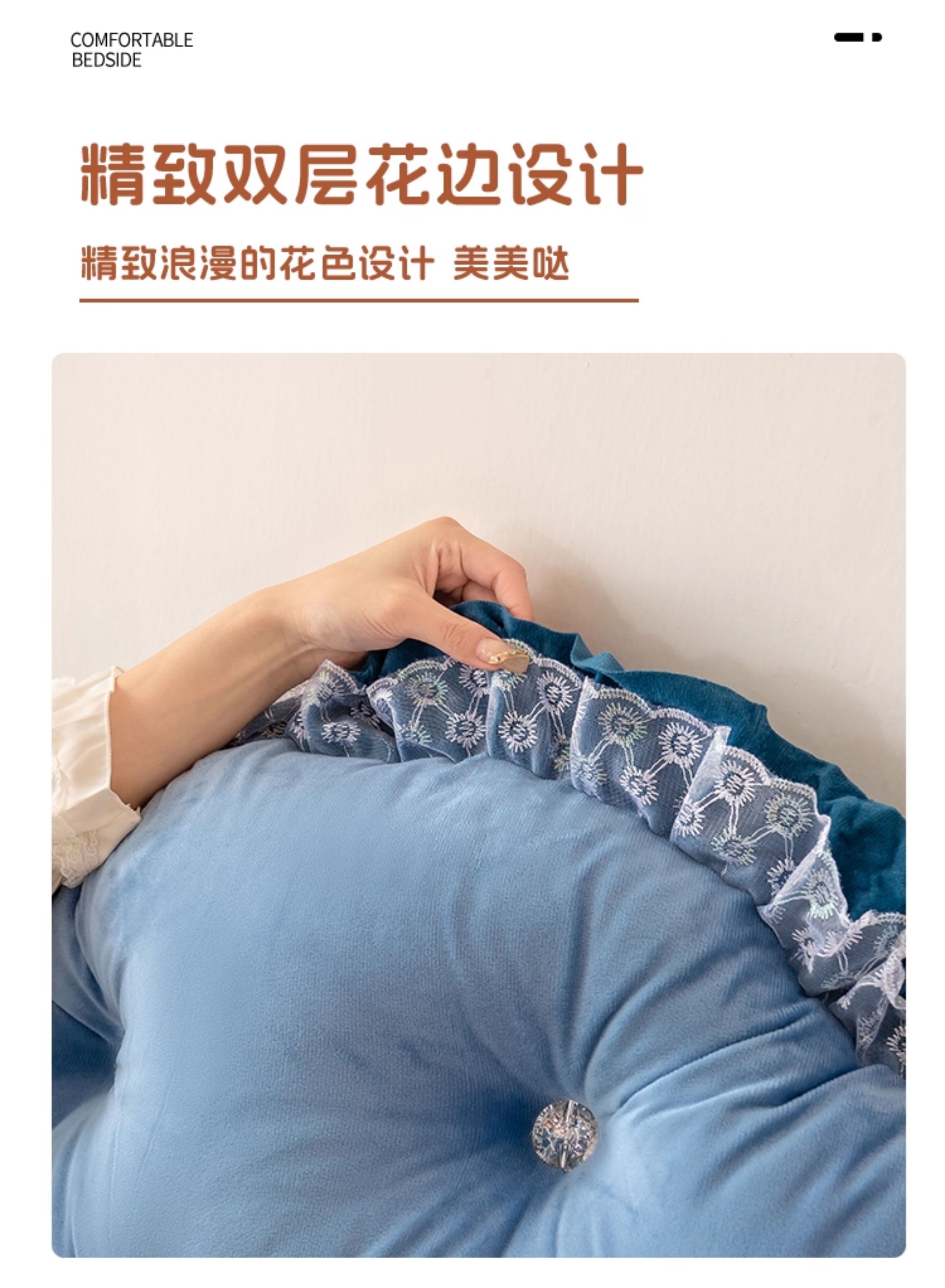 (总)碧尔家居 2025新款荷兰绒弯型三角+头枕床头靠背,奶咖,天蓝,香槟,樱花粉