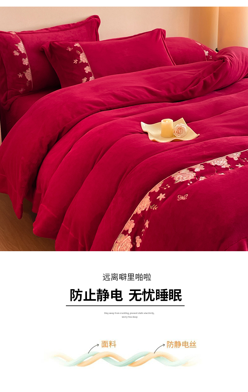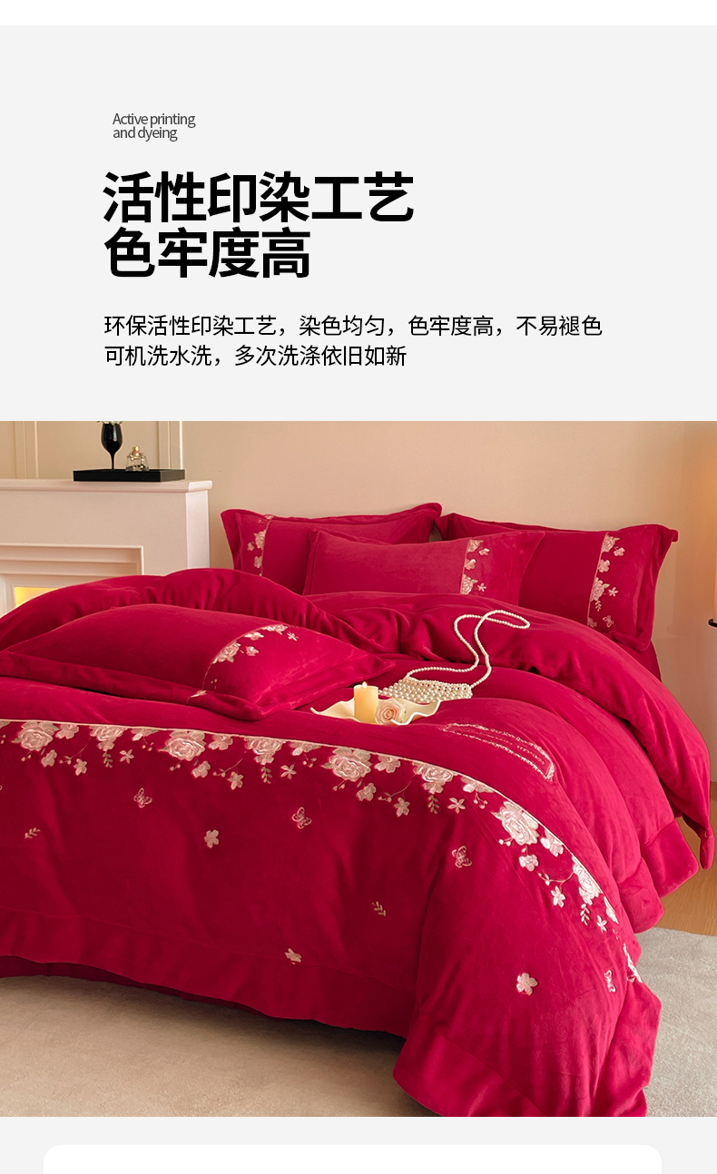 当前位置: 91家纺网 > 商品网购 > 床品套件 > 四件套 > 牛奶绒四件套 > 新方向 2025新款全消光A类刺绣牛奶绒四件套-婚庆红色系列 花意浓-洋酒红