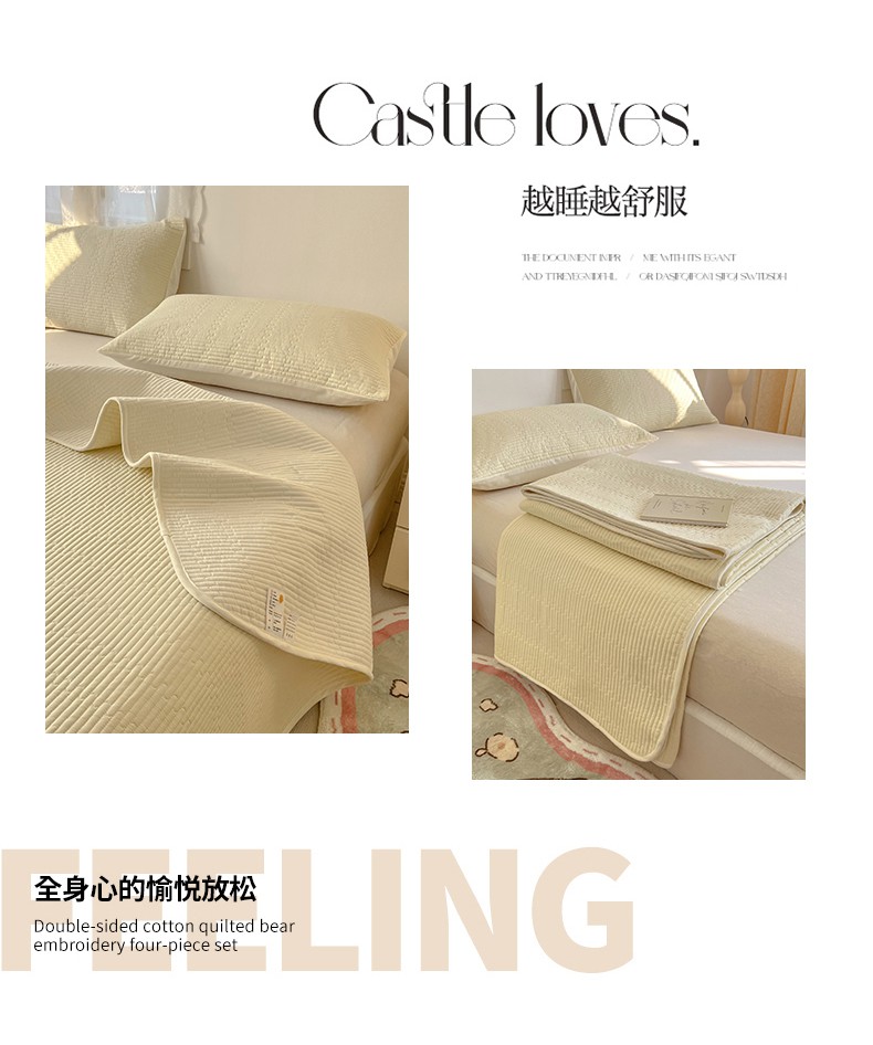 (总)妮可 2025新款荷叶边纯棉绗缝四季款多功能床盖,奶油黄,冰湖蓝,豆豆沙,梦幻粉,气质灰,森林绿,芝兰紫