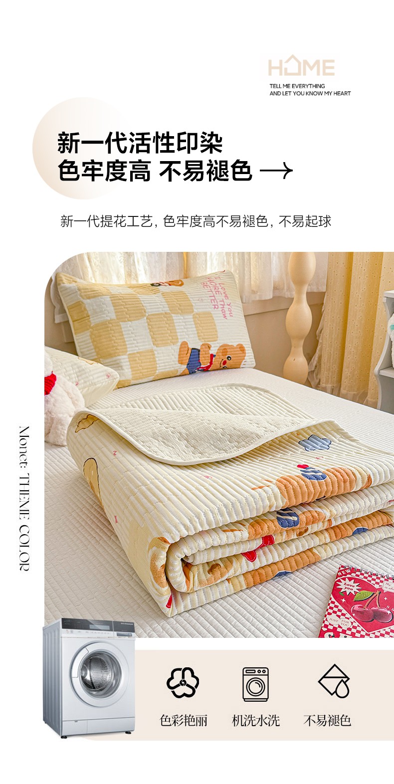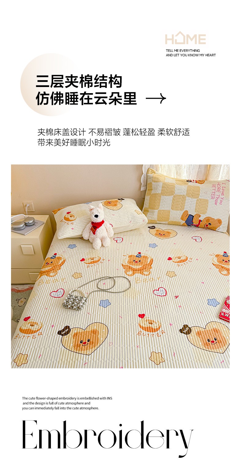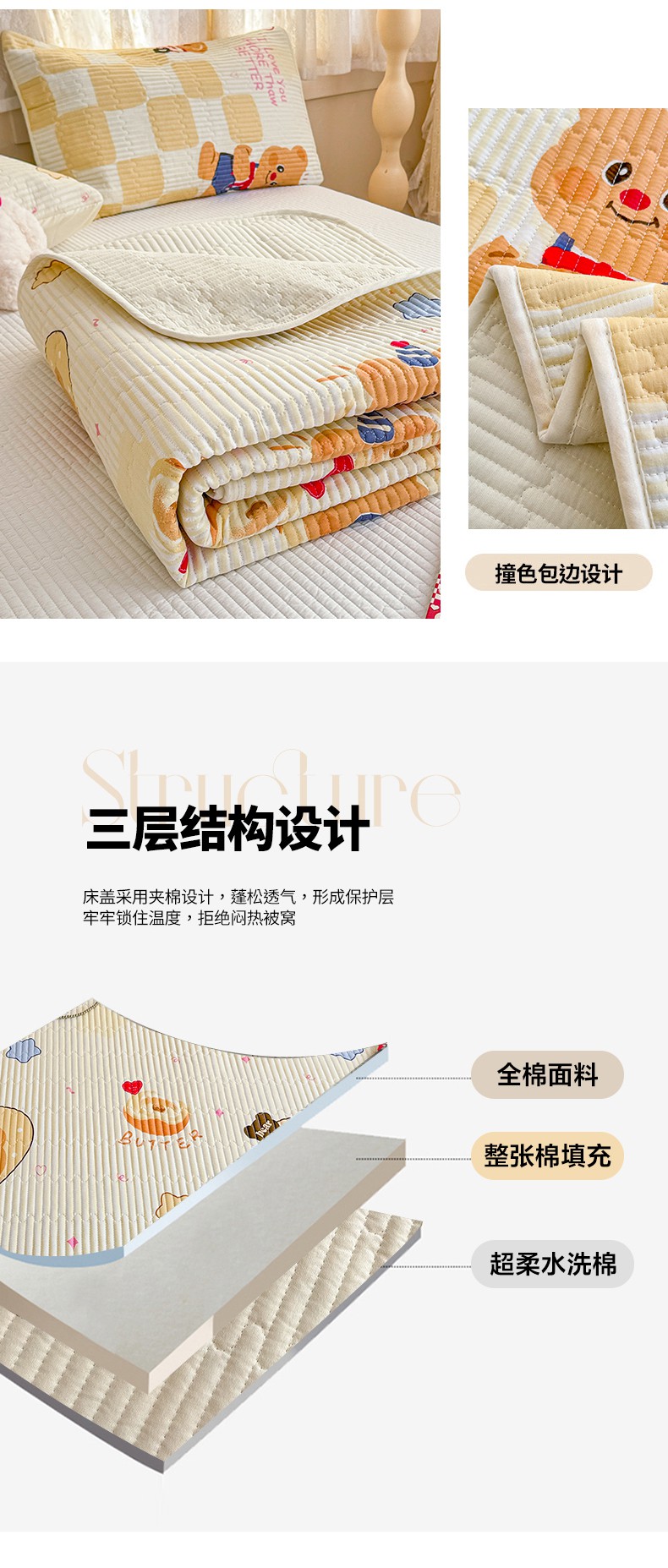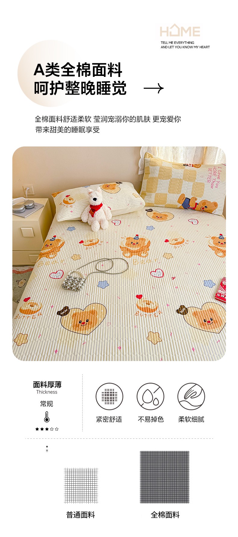 • 91家纺网 家纺一手货源 找家纺 妮可 2025新款热款花型印花全棉夹棉多功能床垫-床盖 黄油小熊