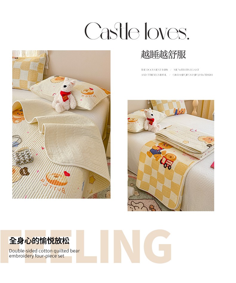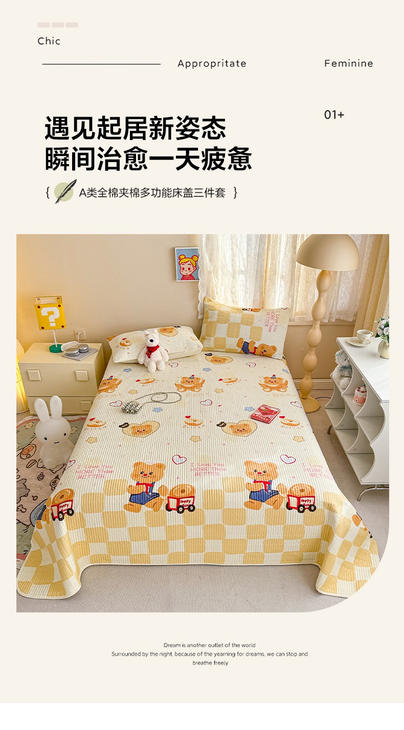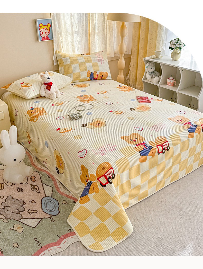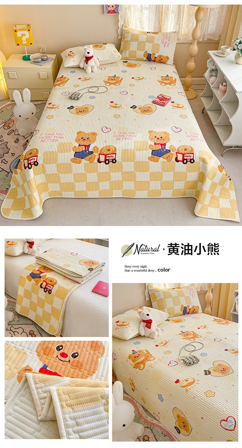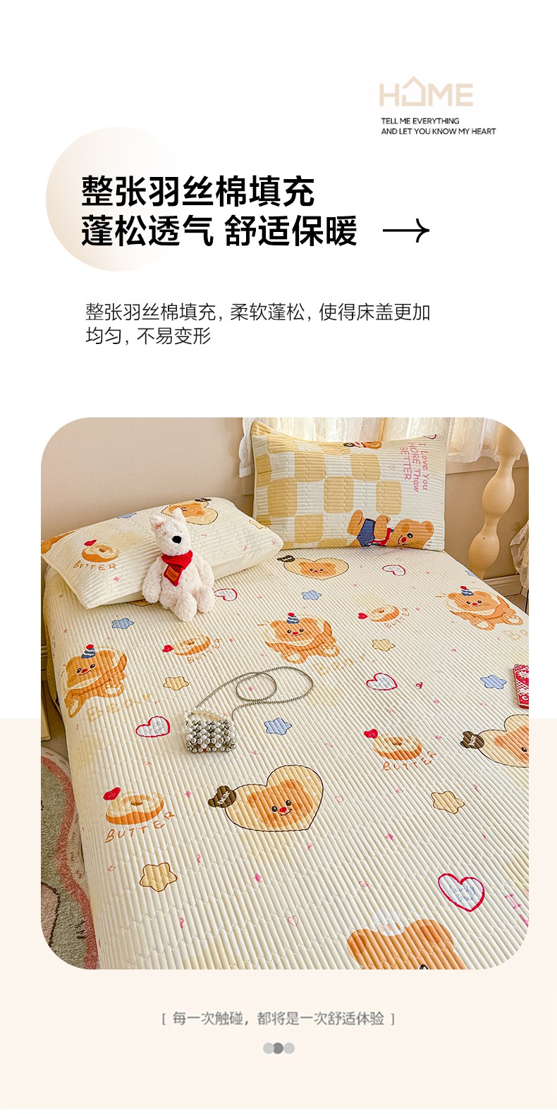 • 91家纺网 家纺一手货源 找家纺 妮可 2025新款热款花型印花全棉夹棉多功能床垫-床盖 黄油小熊