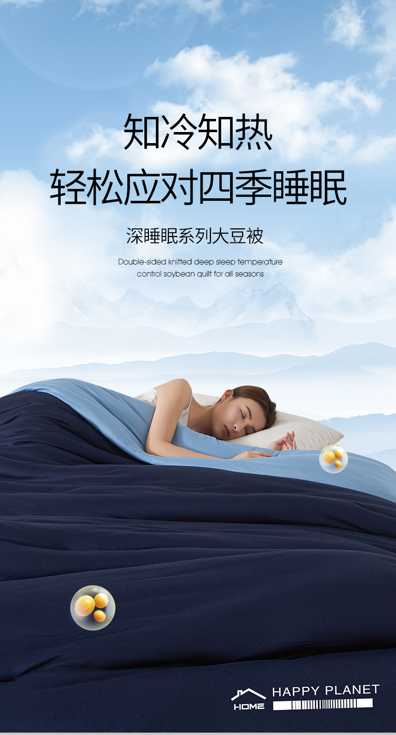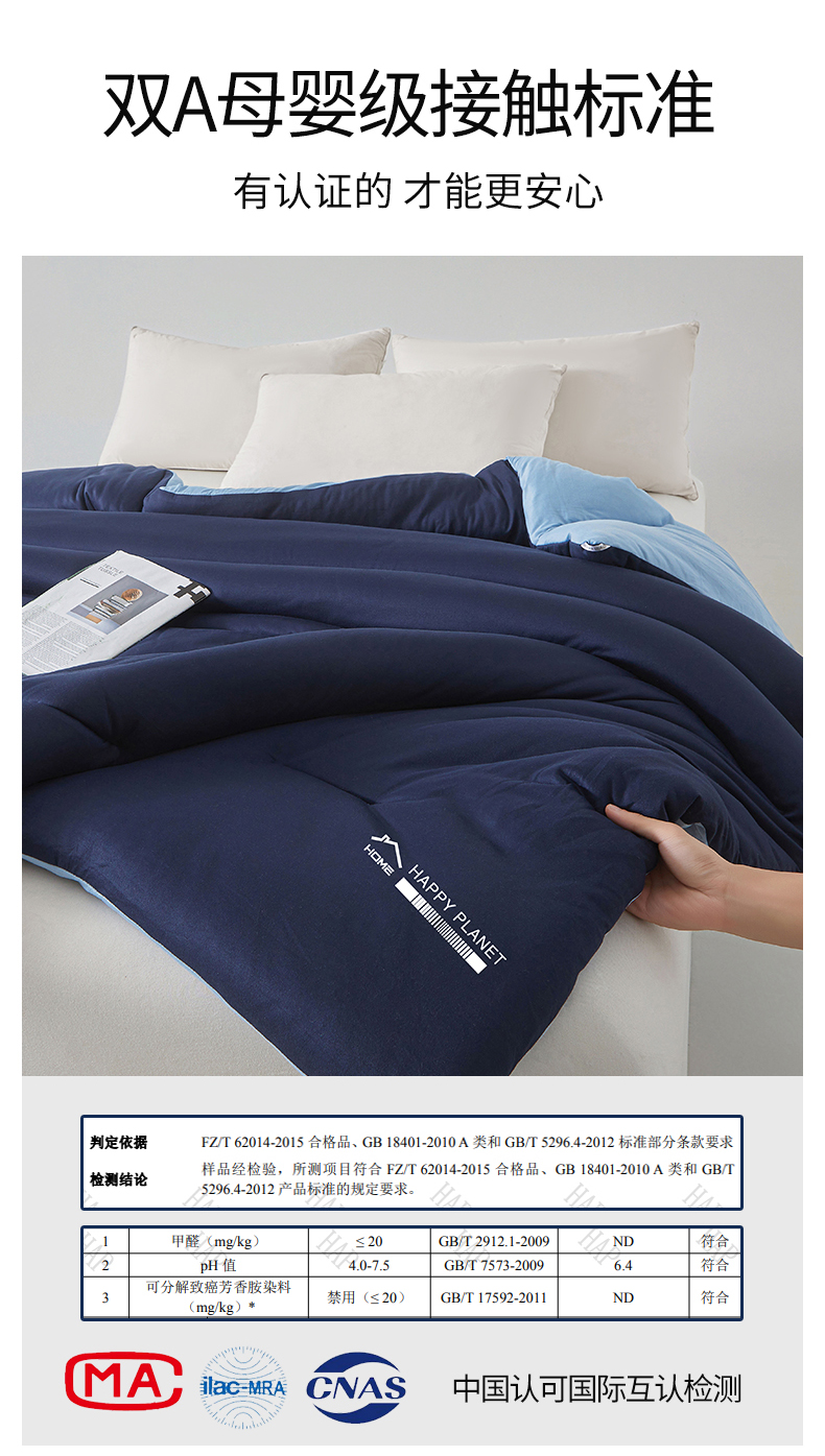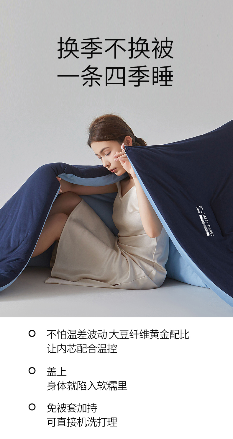 • 91家纺网 家纺一手货源 找家纺 阳光被业 2025亚朵同款A类针织棉大豆被春秋被四季被A类针织棉芯秋冬保暖被子 深睡蓝
