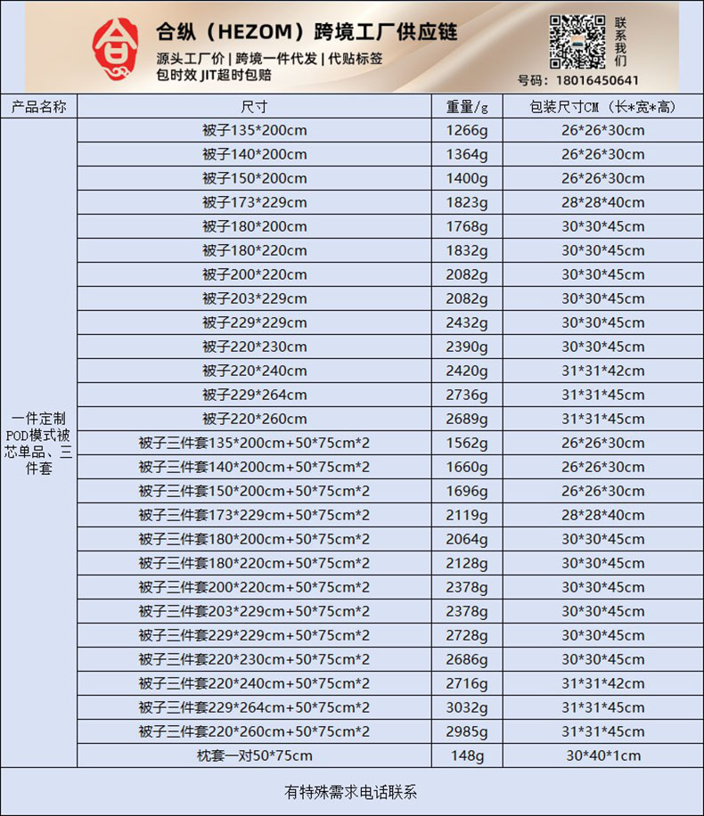 合纵跨境工厂 一件定制pod模式jit跨境90G磨毛被子芯单品套件一件代发temu希音集采shein亚马逊24h发 0159184141