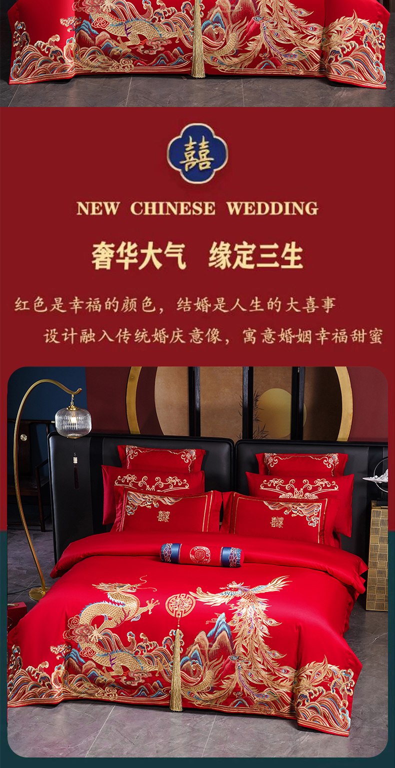 当前位置: 91家纺网 > 商品网购 > 床品套件 > 四件套 > 婚庆四件套 > 博之洋婚庆 2025新款全棉新中式刺绣款婚庆四件套多件套 龙凤王朝