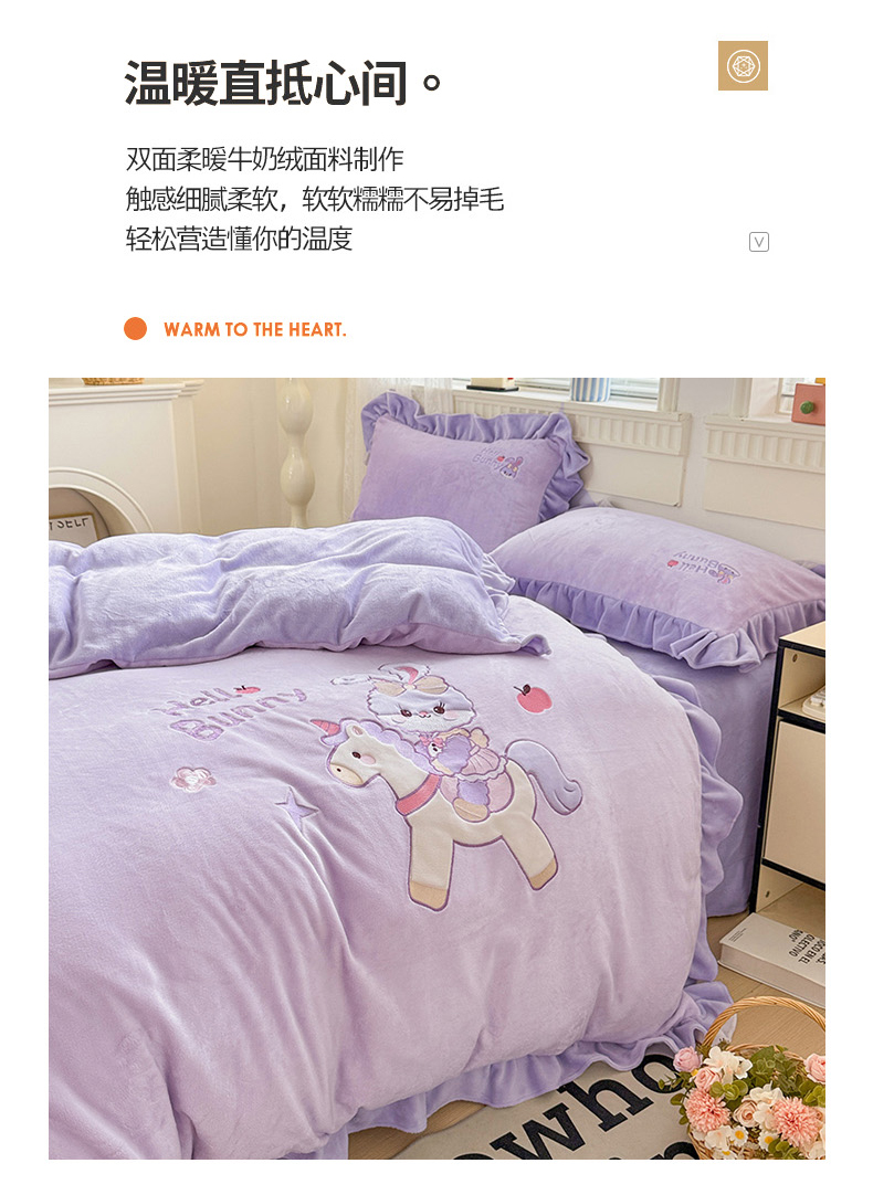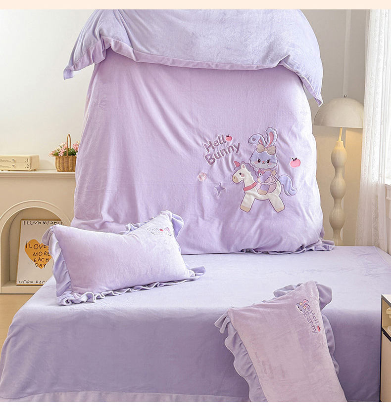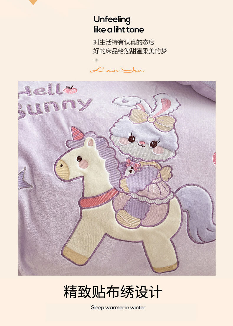 当前位置: 91家纺网 > 商品网购 > 床品套件 > 四件套 > 牛奶绒四件套 > 星尚家纺 2025新款全消光230g牛奶绒卡通贴布绣三件套四件套 戴菲兔