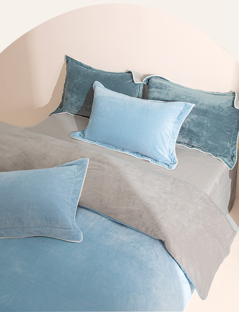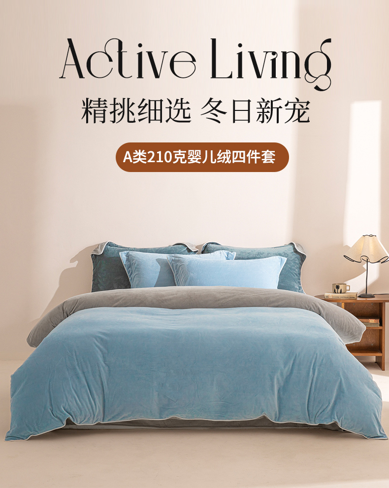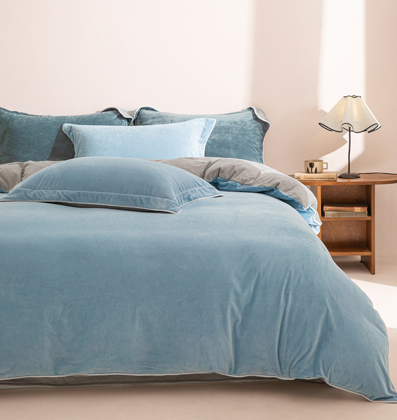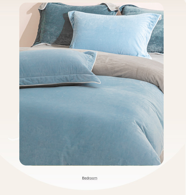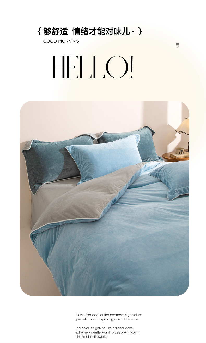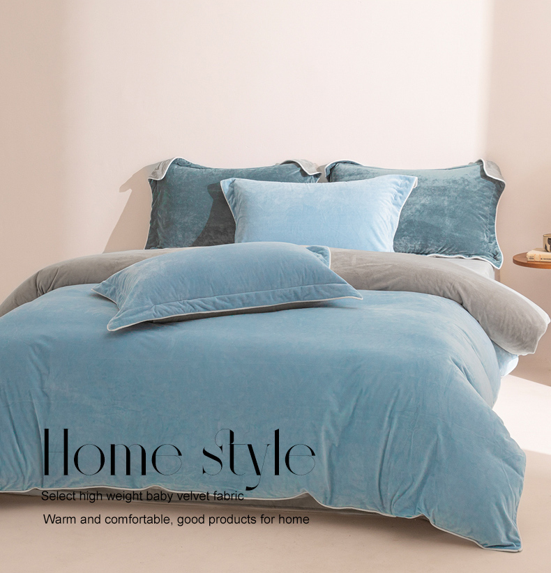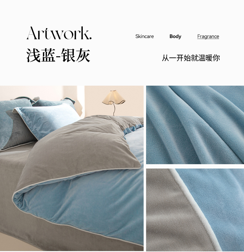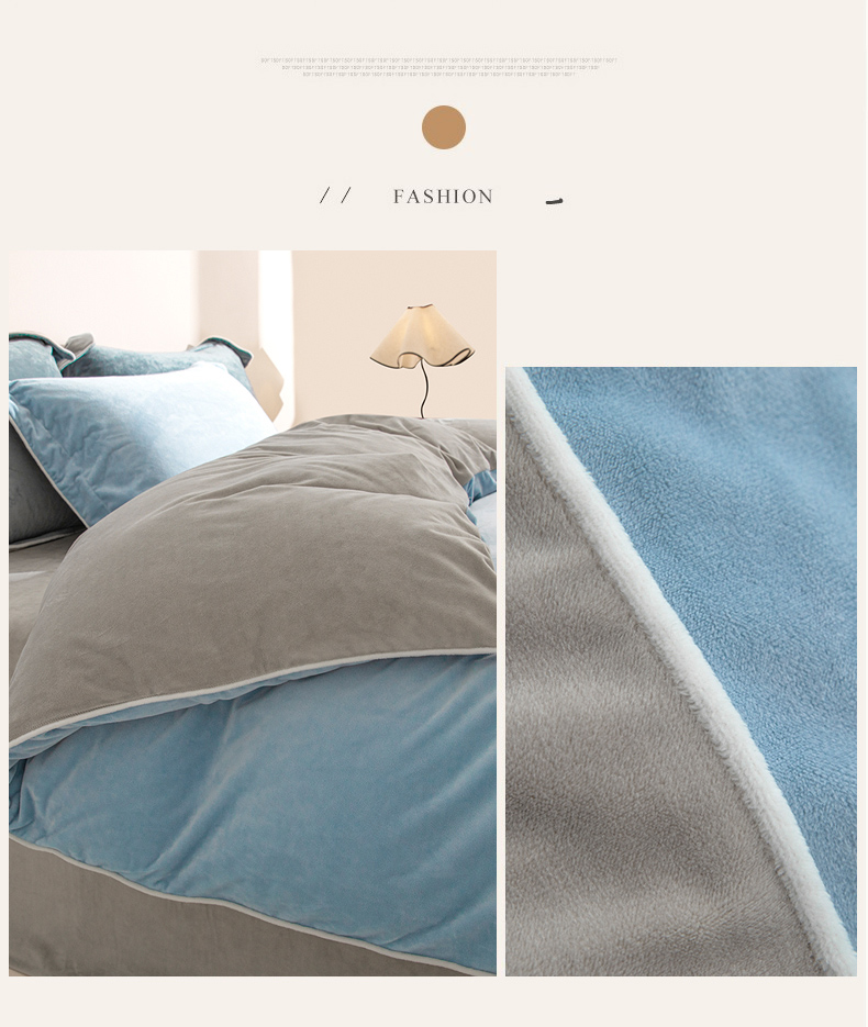 商品名称:安力森/诚臻酒店用品 2025新款麻绳婴儿绒四件套秋冬加厚亲肤保暖卧室床品套件 浅蓝-银灰