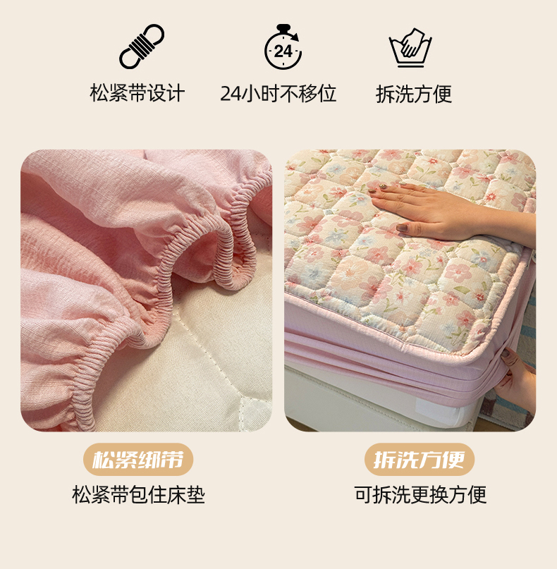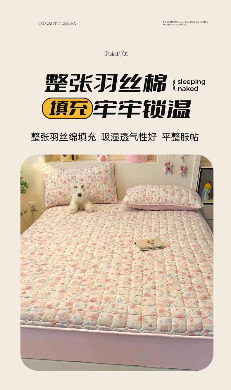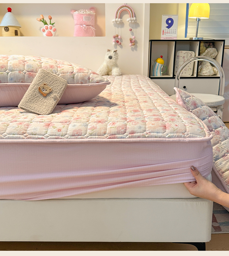 • 91家纺网 家纺一手货源 找家纺 丝芙妮家居(原乐视家纺) 2025新款A类亲肤云朵棉夹棉保暖床笠 海棠花眠
