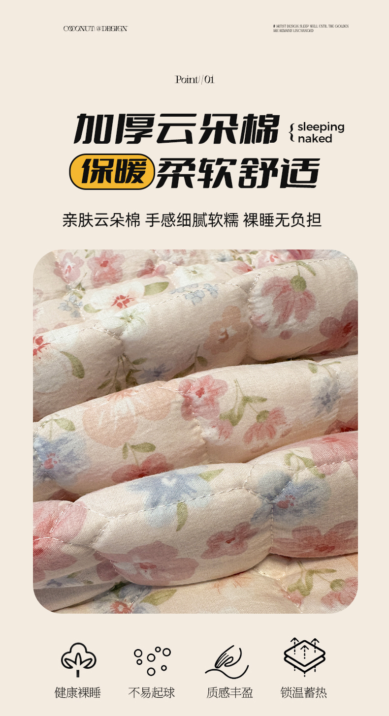 当前位置: 91家纺网 > 商品网购 > 床上用品 > 床笠 > 丝芙妮家居(原乐视家纺) 2025新款A类亲肤云朵棉夹棉保暖床笠 海棠花眠