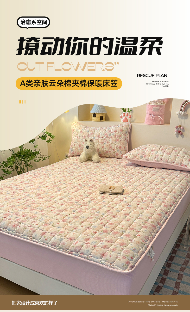 丝芙妮家居(原乐视家纺) 2025新款A类亲肤云朵棉夹棉保暖床笠 海棠花眠