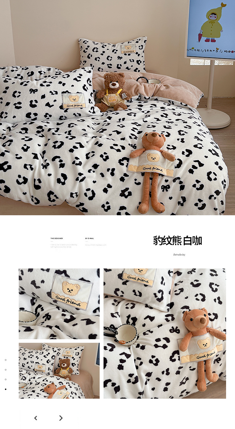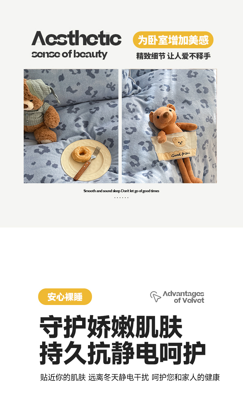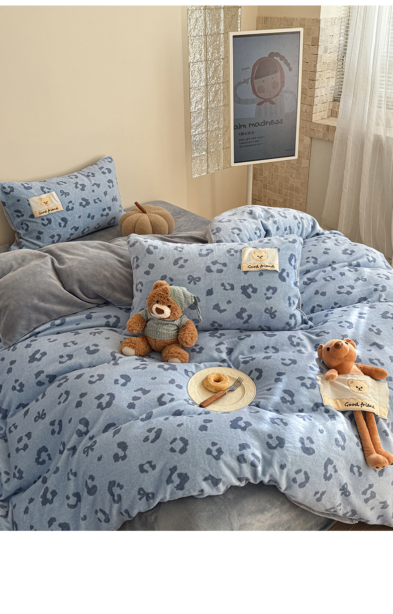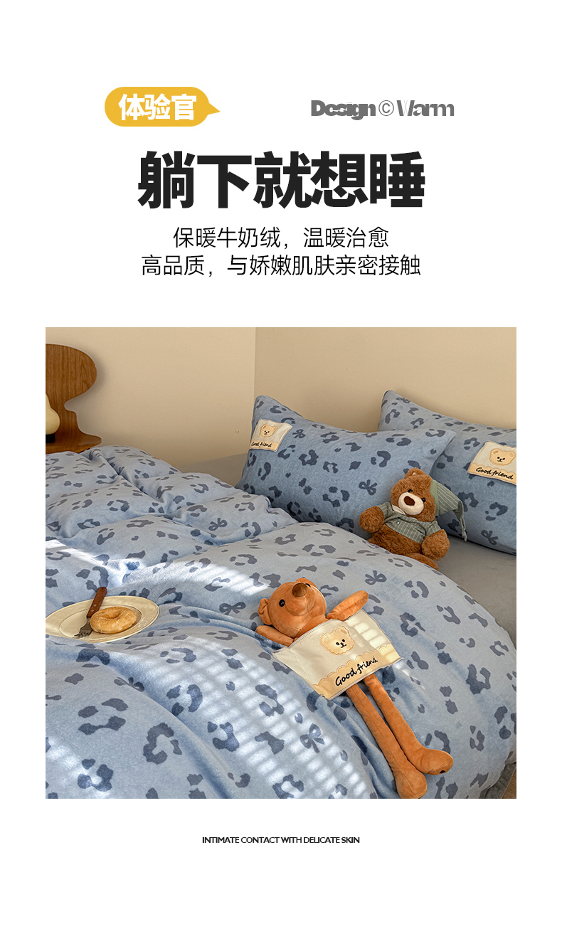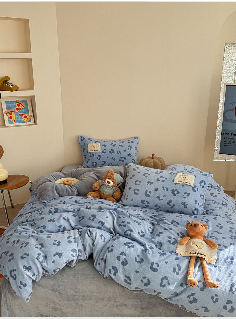 当前位置: 91家纺网 > 商品网购 > 床品套件 > 四件套 > 牛奶绒四件套 > 蜜柚 2025新款高克重牛奶绒数码印花贴布绣玩偶设计四件套 豹纹熊 蓝灰