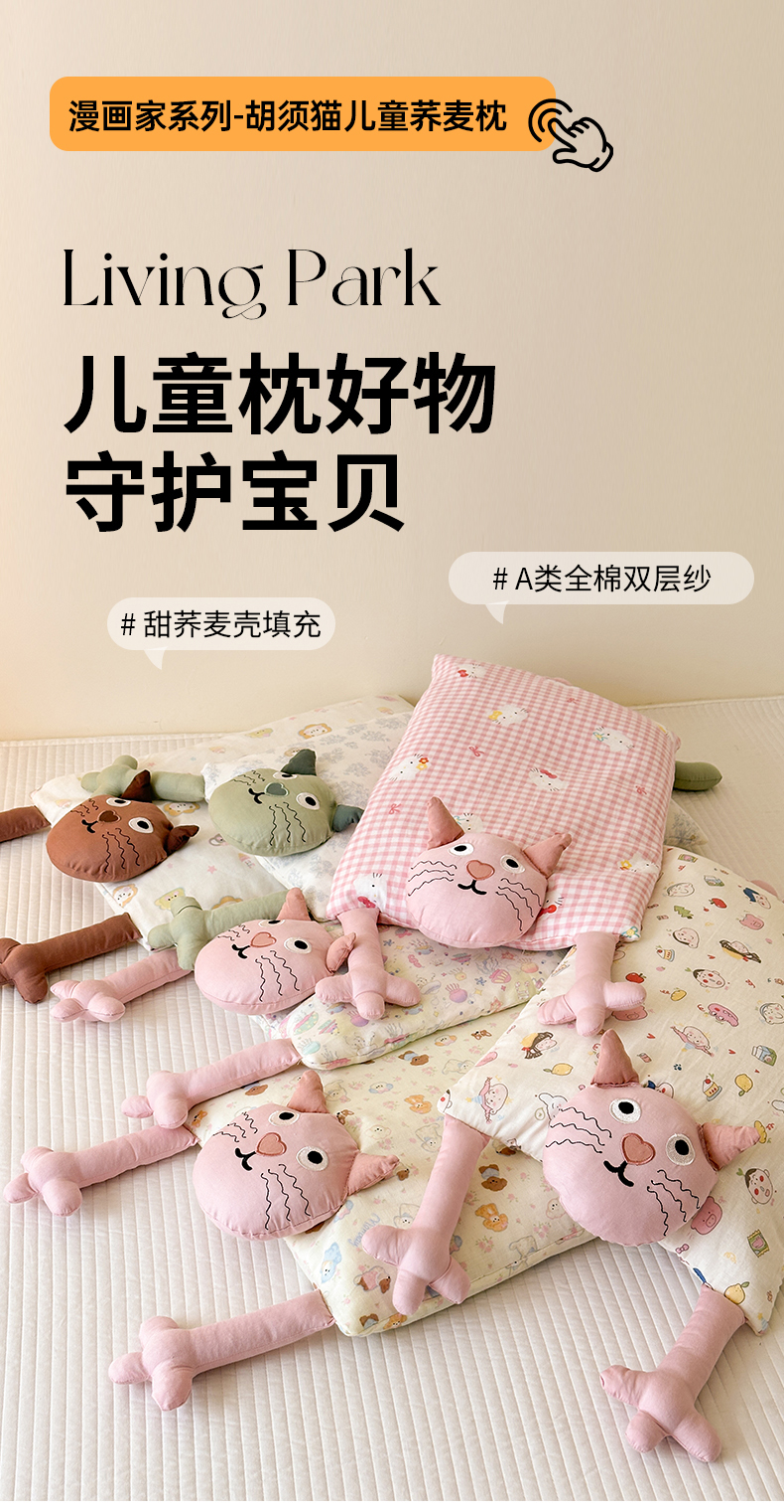 (总)北鸣有鱼枕芯馆 2025新款全棉双层纱漫画家系列荞麦枕-胡须猫,胡须猫-小猫日记,胡须猫-白日梦蓝,胡须猫-精灵岛,胡须猫-奶芙狗,胡须猫-水形物语,胡须猫-小小新,组合图