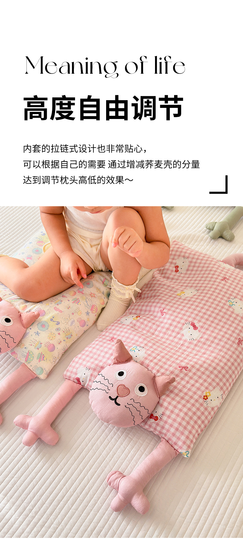 商品名称:北鸣有鱼枕芯馆 2025新款全棉双层纱漫画家系列荞麦枕-胡须猫 胡须猫-小小新