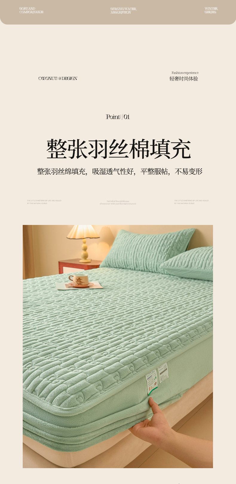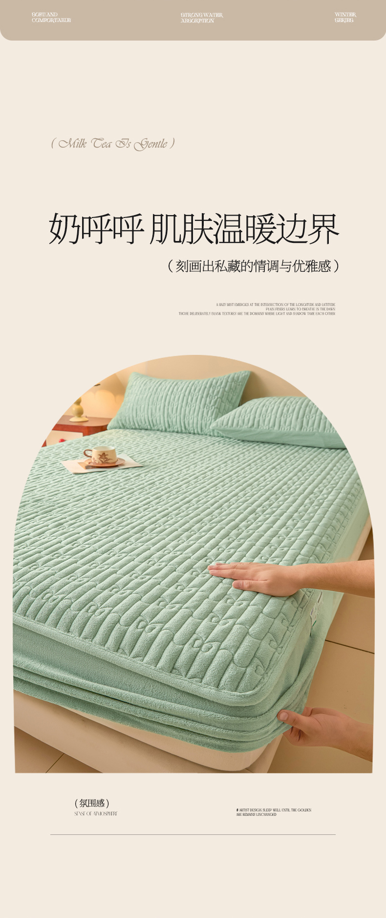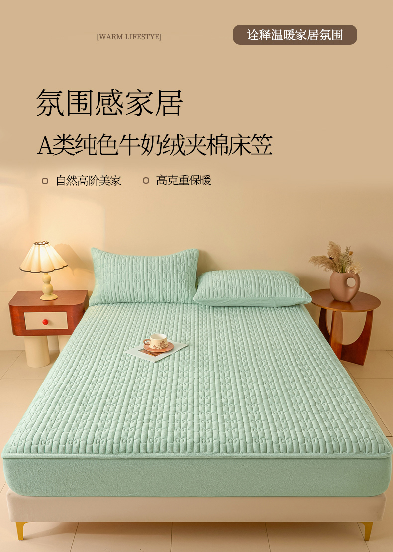 • 91家纺网 家纺一手货源 找家纺 Sweet dreams甜梦 2025新款A类纯色牛奶绒夹棉床笠 清新绿