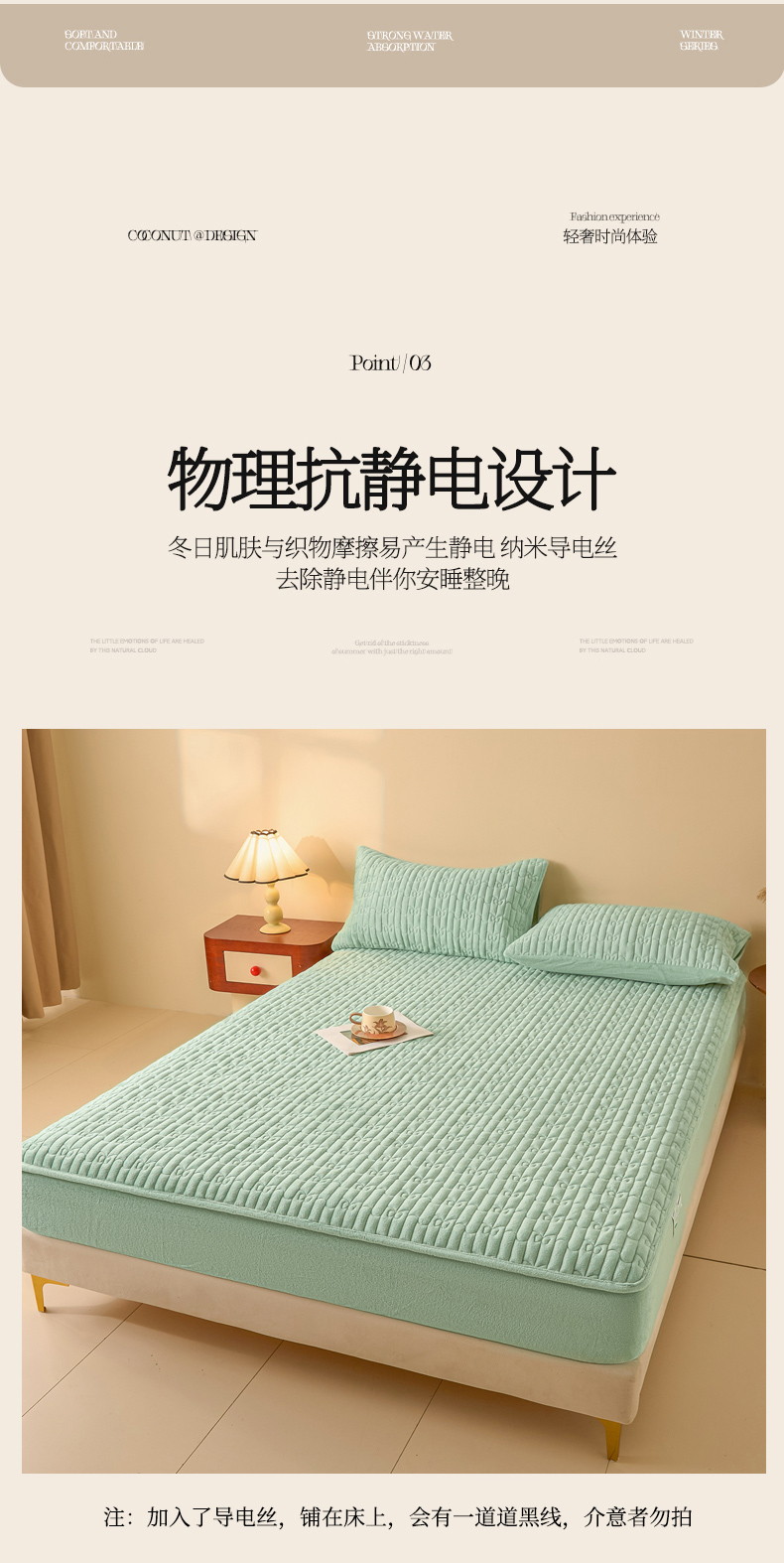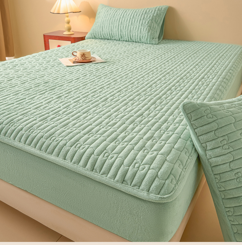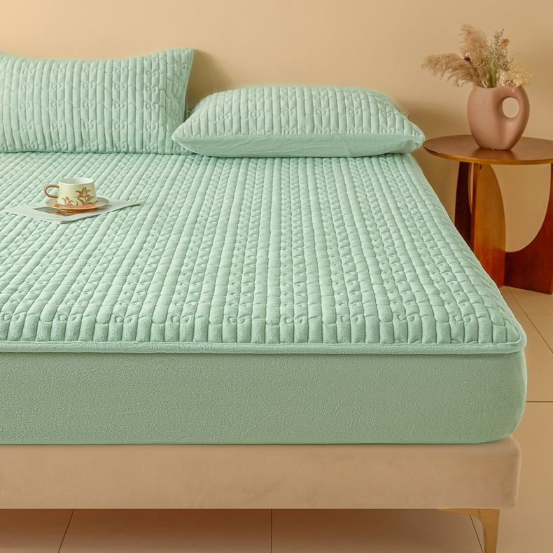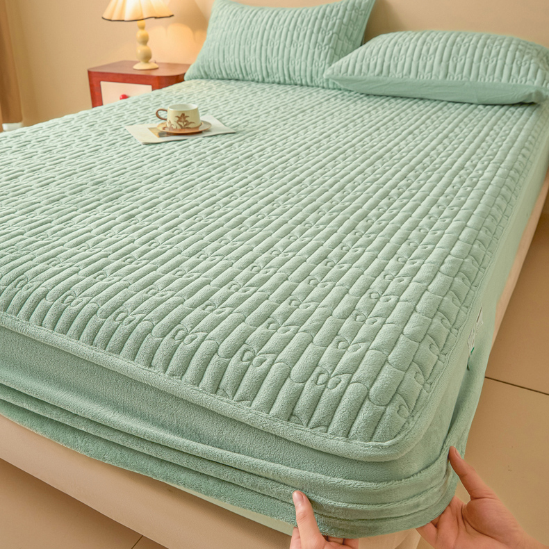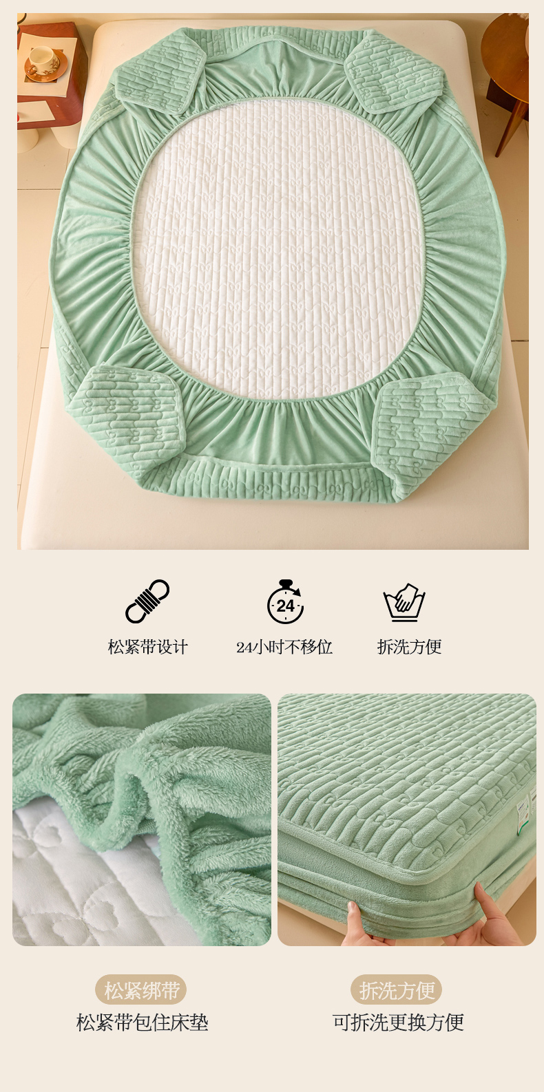 • 91家纺网 家纺一手货源 找家纺 Sweet dreams甜梦 2025新款A类纯色牛奶绒夹棉床笠 清新绿