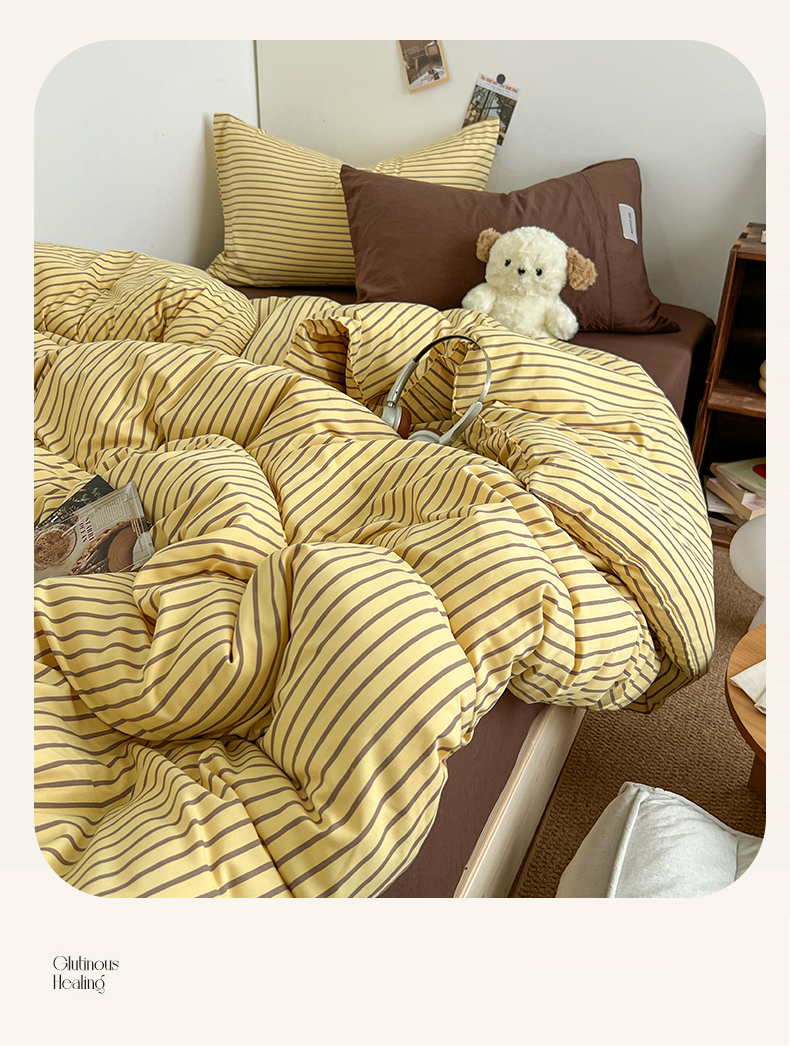 当前位置: 91家纺网 > 商品网购 > 床品套件 > 四件套 > 水洗棉四件套 > 优选 2025新款韩式无印风水洗棉拼色学生三件套床单床笠款四件套 条纹柠檬黄+咖啡
