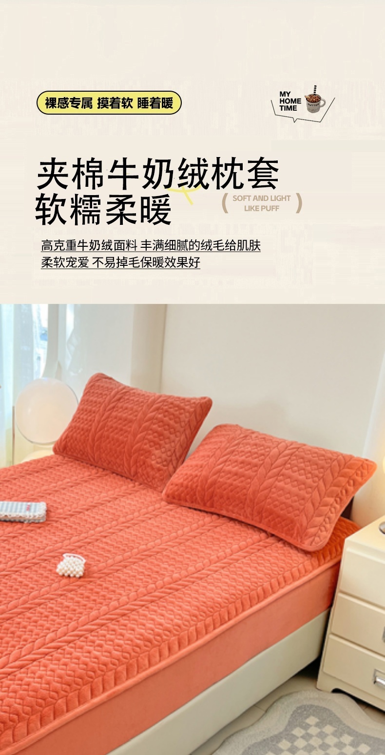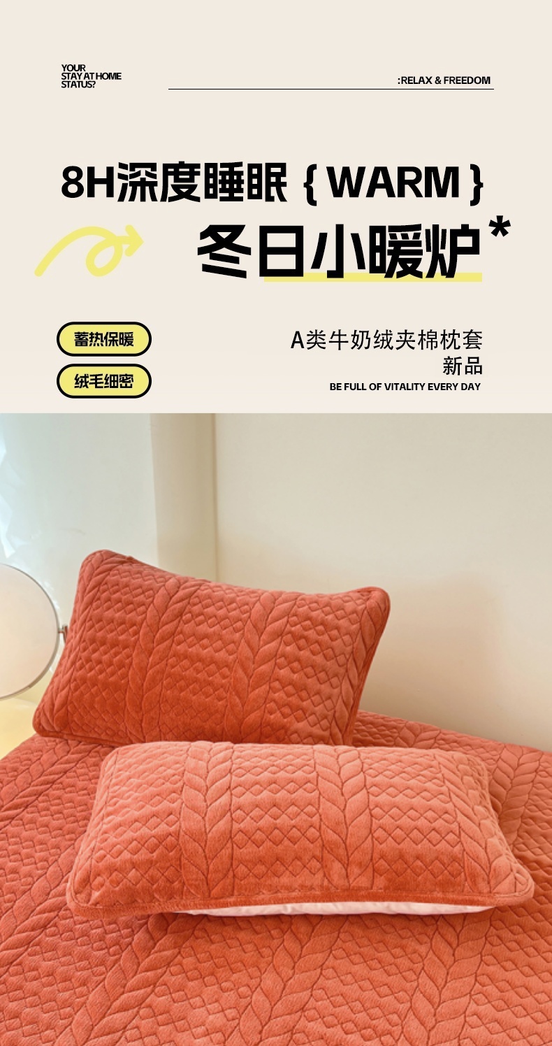 商品名称:梦舒羽 2025新款A类牛奶绒夹棉枕套单人宿舍枕芯套枕头套一对-轻奢 轻奢包边款-活力橙