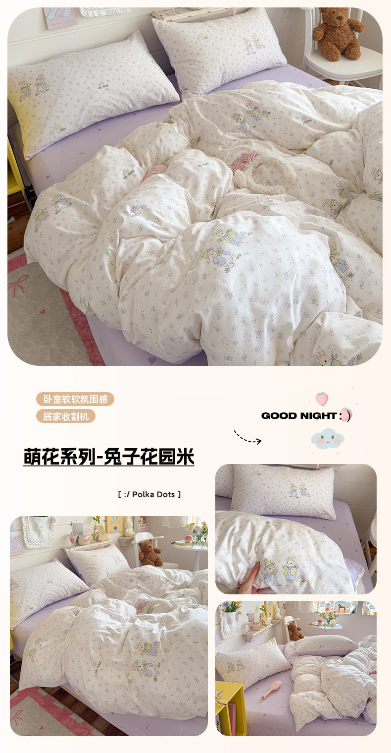 商品名称:(总)港岛妹妹 2025新款高克重双层纱糯糯绵印花四件套-萌花系列