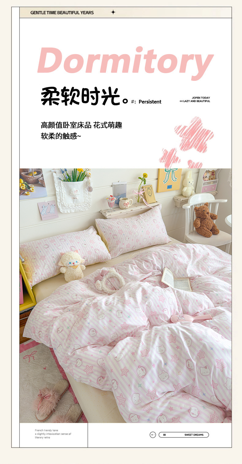 当前位置: 91家纺网 > 商品网购 > 床品套件 > 四件套 > 双层纱四件套 > 港岛妹妹 2025新款高克重双层纱糯糯绵印花四件套-萌花系列 萌花系列-星星凯蒂粉