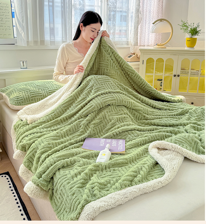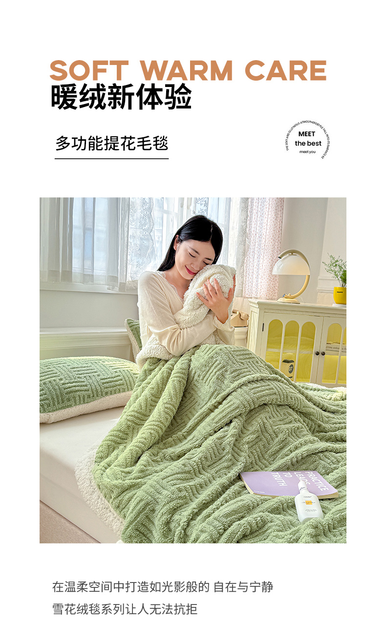 (总)默忆 2025新款塔芙绒提花毛毯,草木绿,冰川灰,蓝灰色,米白色,米黄色,深卡其,组合