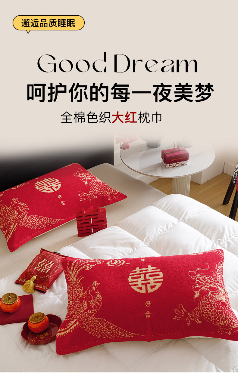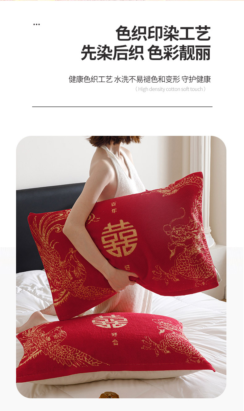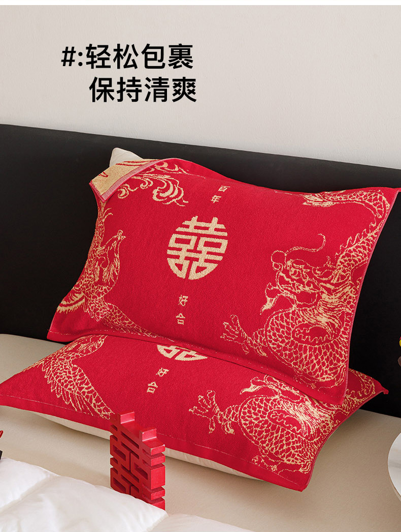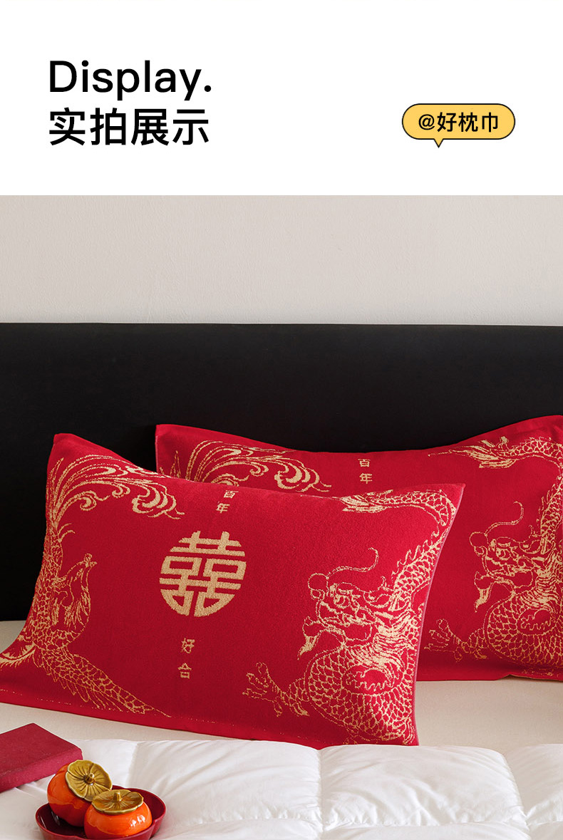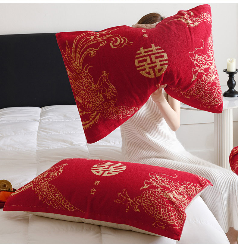 爱港家纺 2025专版新款老式全棉大红枕巾结婚枕巾喜庆百福枕巾 龙凤呈祥