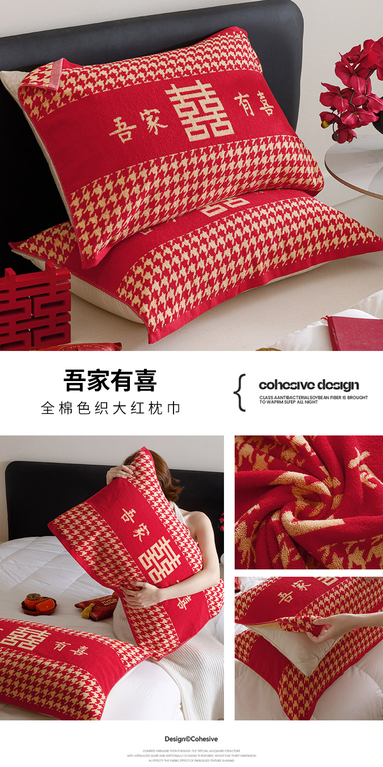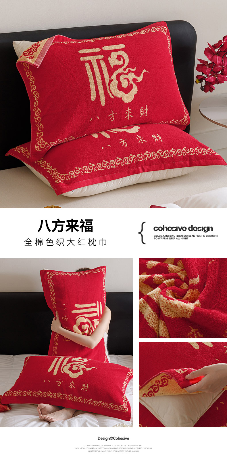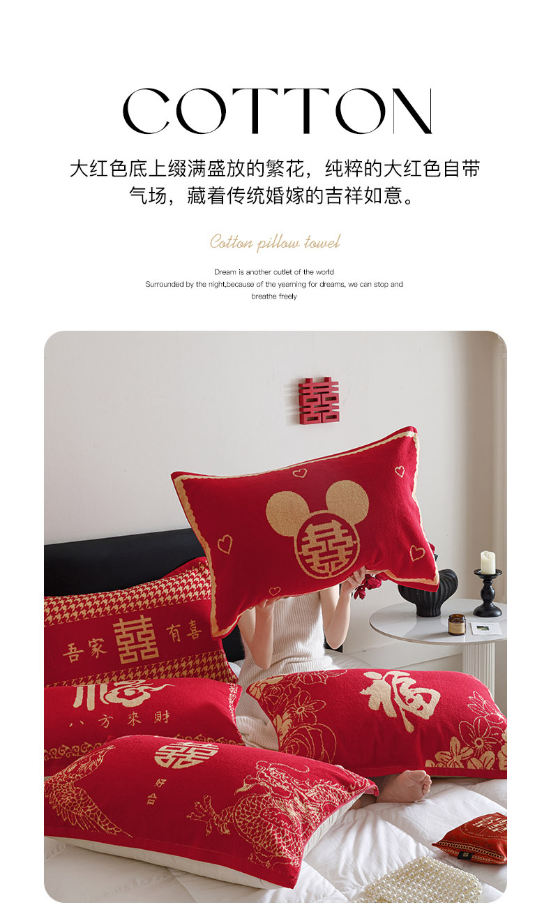 (总)爱港家纺 2025专版新款老式全棉大红枕巾结婚枕巾喜庆百福枕巾,八方来财,锦绣花福,龙凤呈祥,童话喜韵,吾家有喜,永结同心,组合