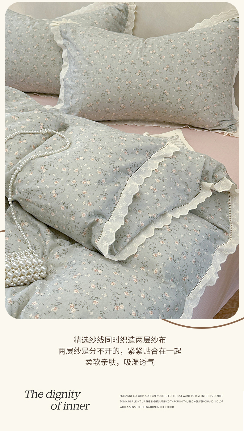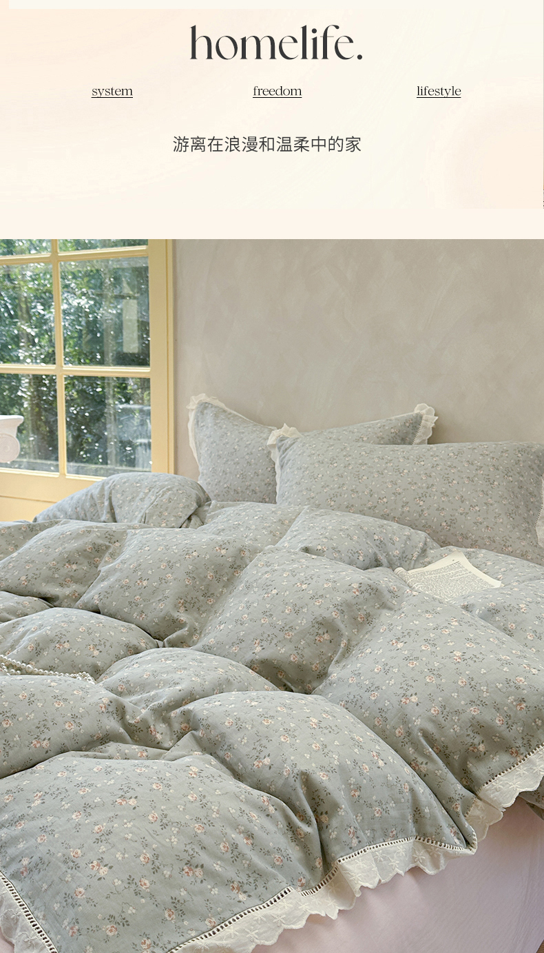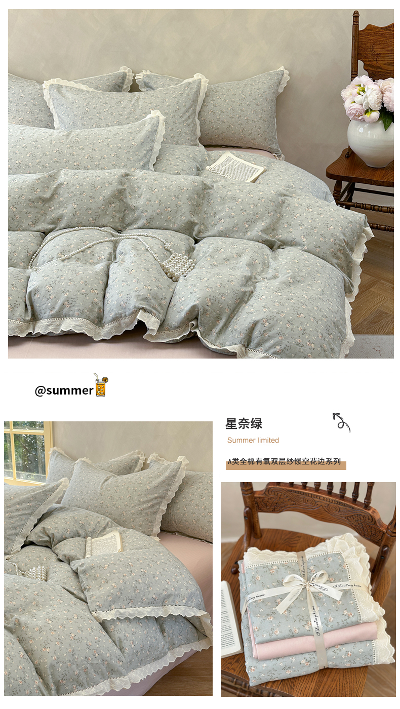 当前位置: 91家纺网 > 商品网购 > 床品套件 > 四件套 > 双层纱四件套 > 麦伦家居 2025新款A类全棉有氧双层纱印花系列四件套-镂空系列 星奈绿
