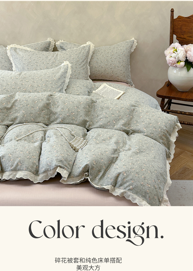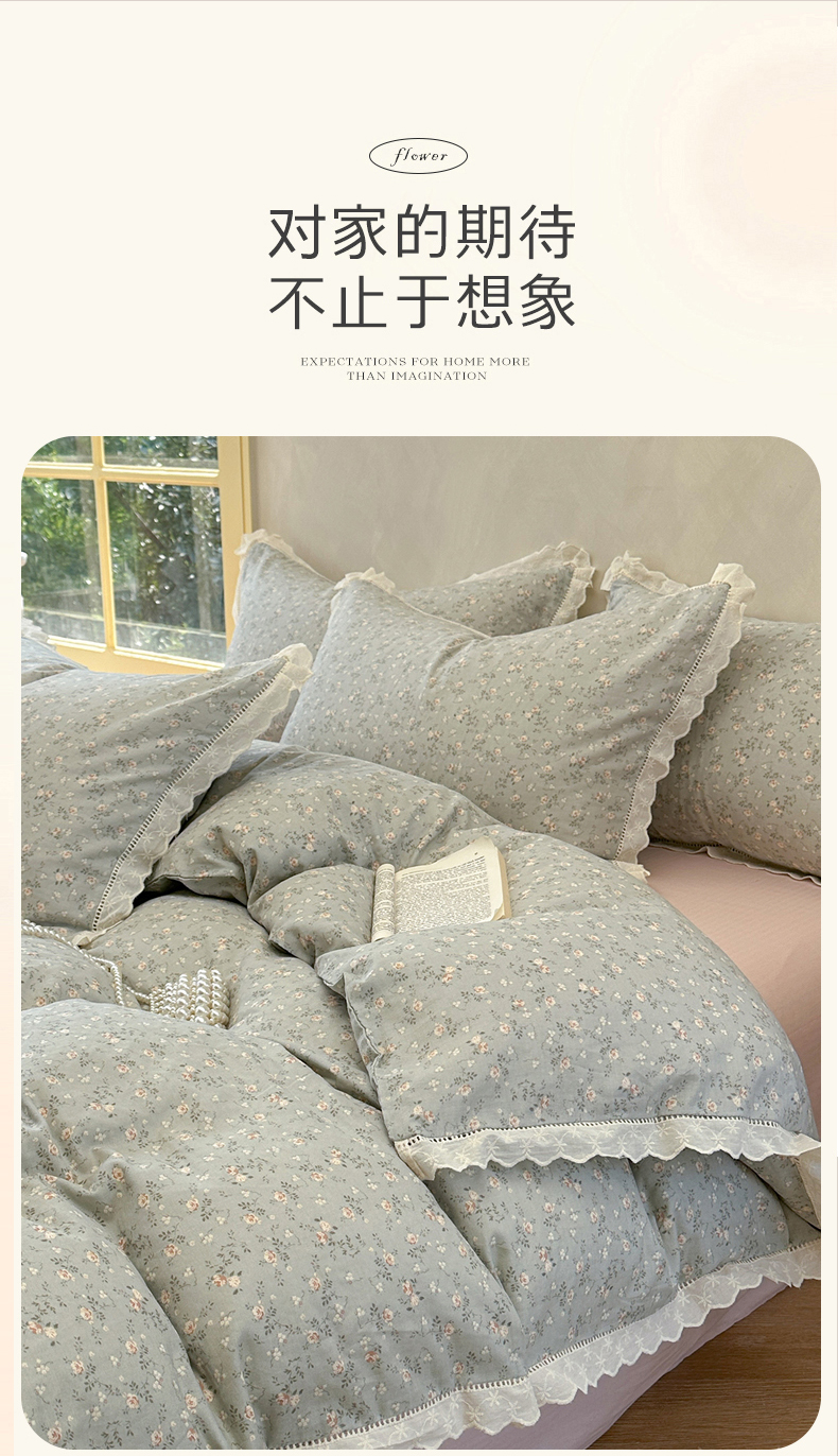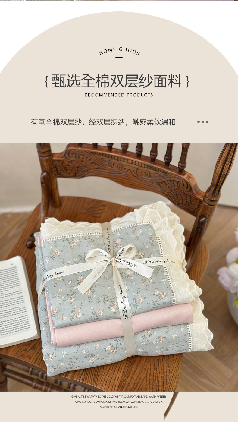 当前位置: 91家纺网 > 商品网购 > 床品套件 > 四件套 > 双层纱四件套 > 麦伦家居 2025新款A类全棉有氧双层纱印花系列四件套-镂空系列 星奈绿