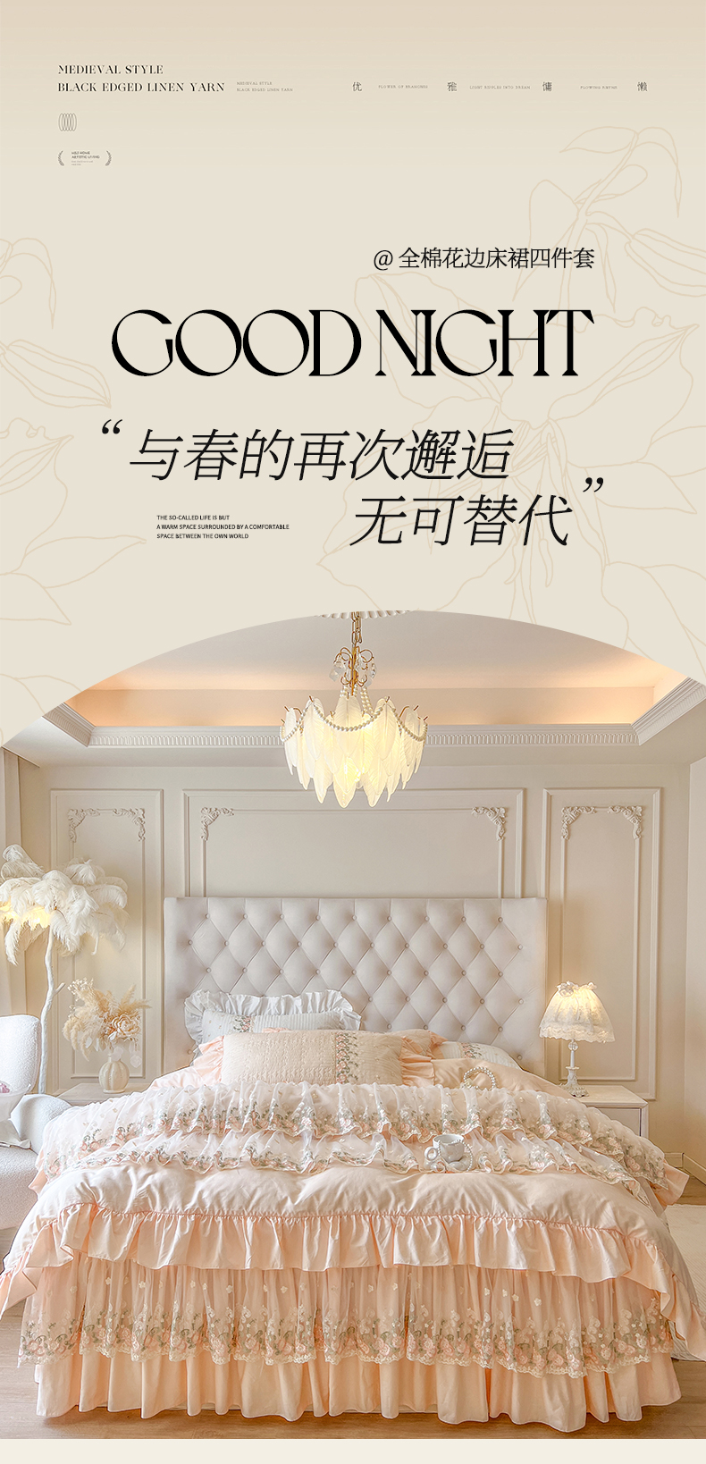 当前位置: 91家纺网 > 商品网购 > 床品套件 > 四件套 > 其它四件套 > (总)瑞宝 2025新款全棉花边床裙四件套系列-落日甜茶(控价308起)
