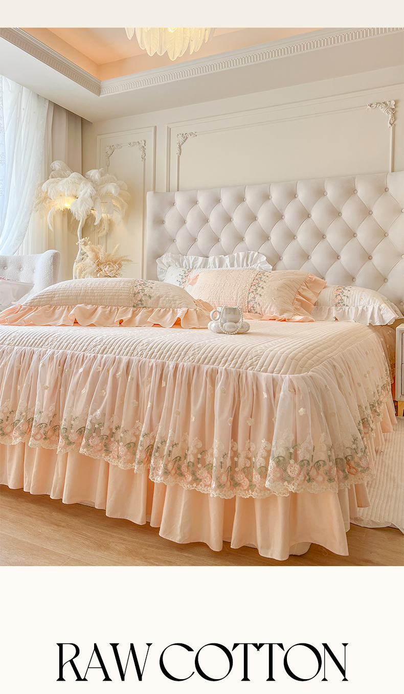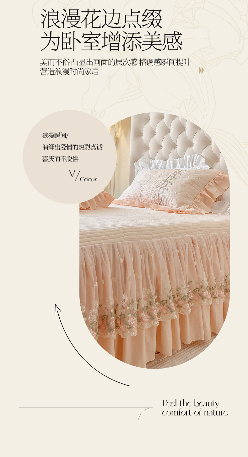 当前位置: 91家纺网 > 商品网购 > 床品套件 > 三件套 > (总)瑞宝 2025新款全棉花边床裙三件套系列-落日甜茶