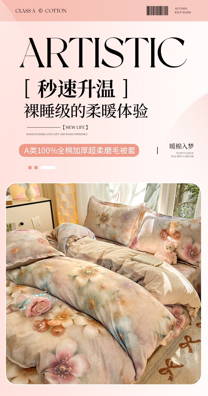 • 91家纺网 家纺一手货源 找家纺 拾物记 2025新款A类全棉纯棉加厚超柔磨毛单被套(提供买家秀质检报告和实验视频) 听妍