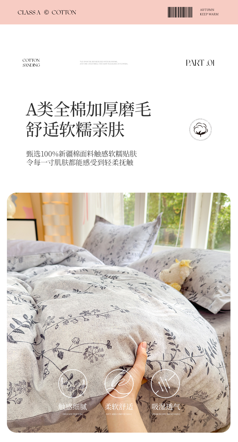 • 91家纺网 家纺一手货源 找家纺 拾物记 2025新款A类全棉纯棉加厚超柔磨毛单被套(提供买家秀质检报告和实验视频) 织梦-灰
