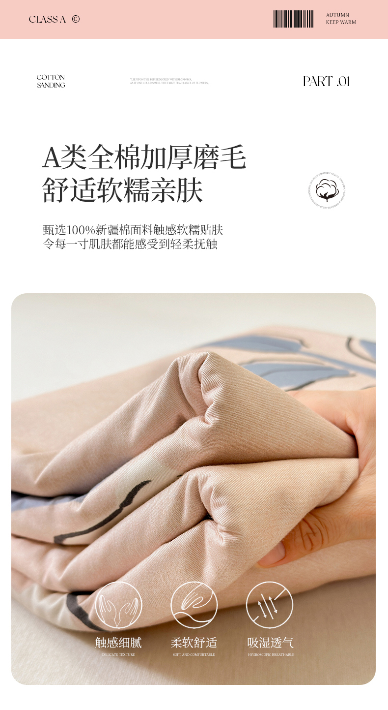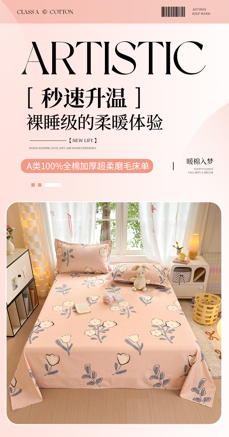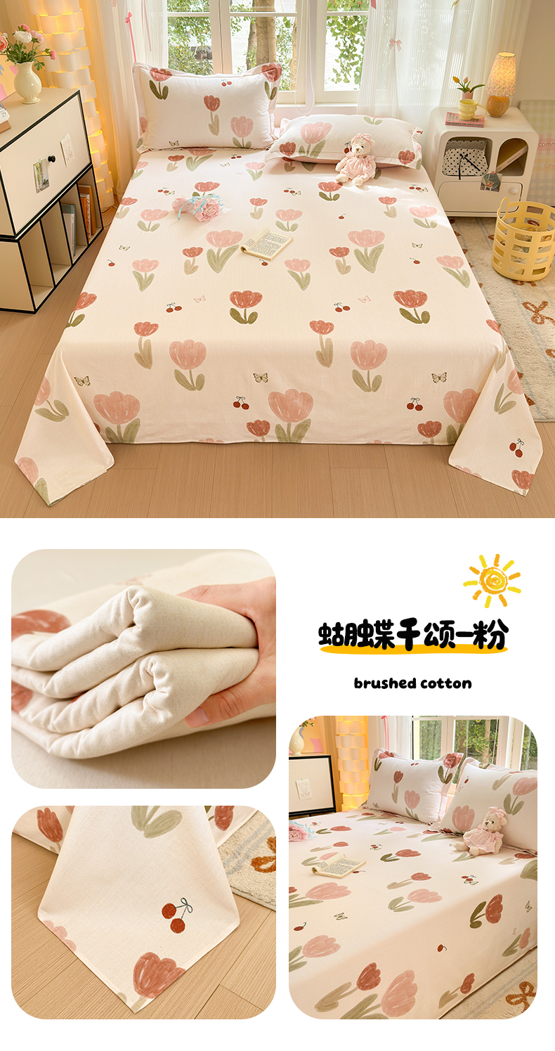 • 91家纺网 家纺一手货源 找家纺 拾物记 2025新款A类全棉纯棉加厚超柔磨毛单床单(提供买家秀质检报告和实验视频) 千芬里-桔