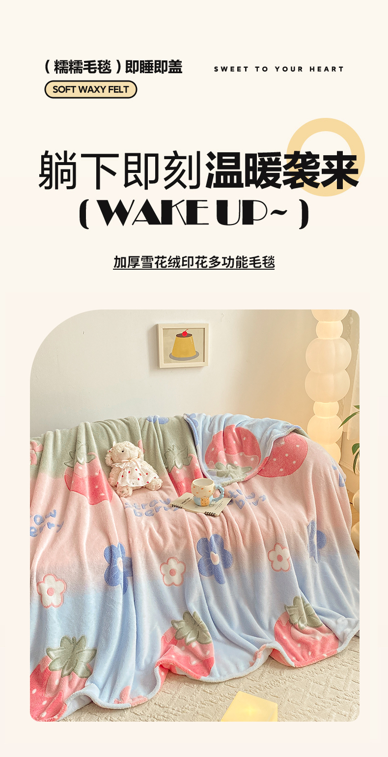 商品名称:爱彼家纺 2025热门冬季加厚雪花绒印花多功能毛毯毯子修色图-系列二 小岛来信