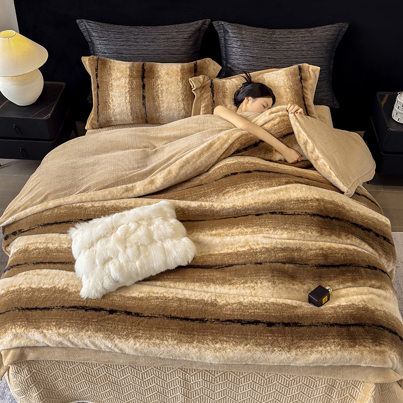 (总)若未家居 LOVEWE HOUSE 2025新款轻奢意式风仿真貂绒床盖四件套A版400克B版260克-北国雪乡,北国雪乡 暗夜灰,北国雪乡 咖,北国雪乡 驼